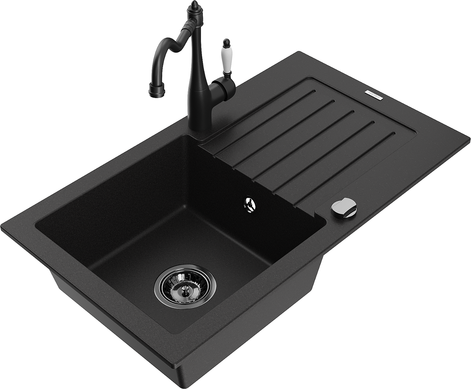 Mexen Pablo évier de cuisine en granit 1 bac avec égouttoir et robinet Carla, noir - 6510-77-670700-70-B