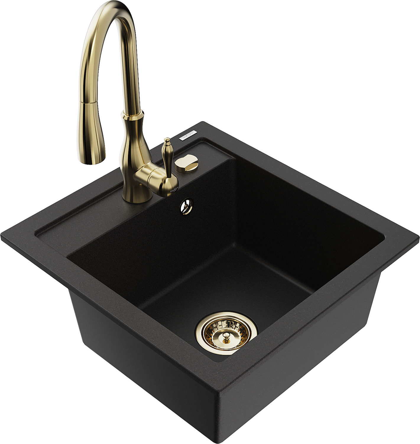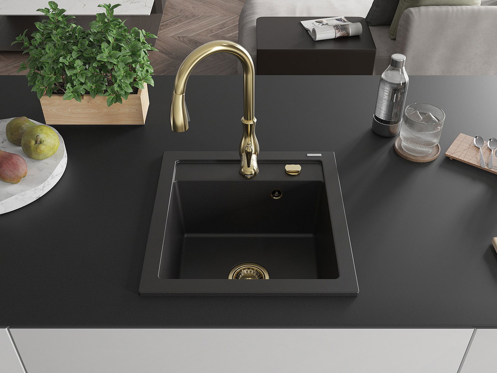 Mexen Vito évier en granit 1 bac avec robinet de cuisine Savita, noir - 6503-77-672601-50