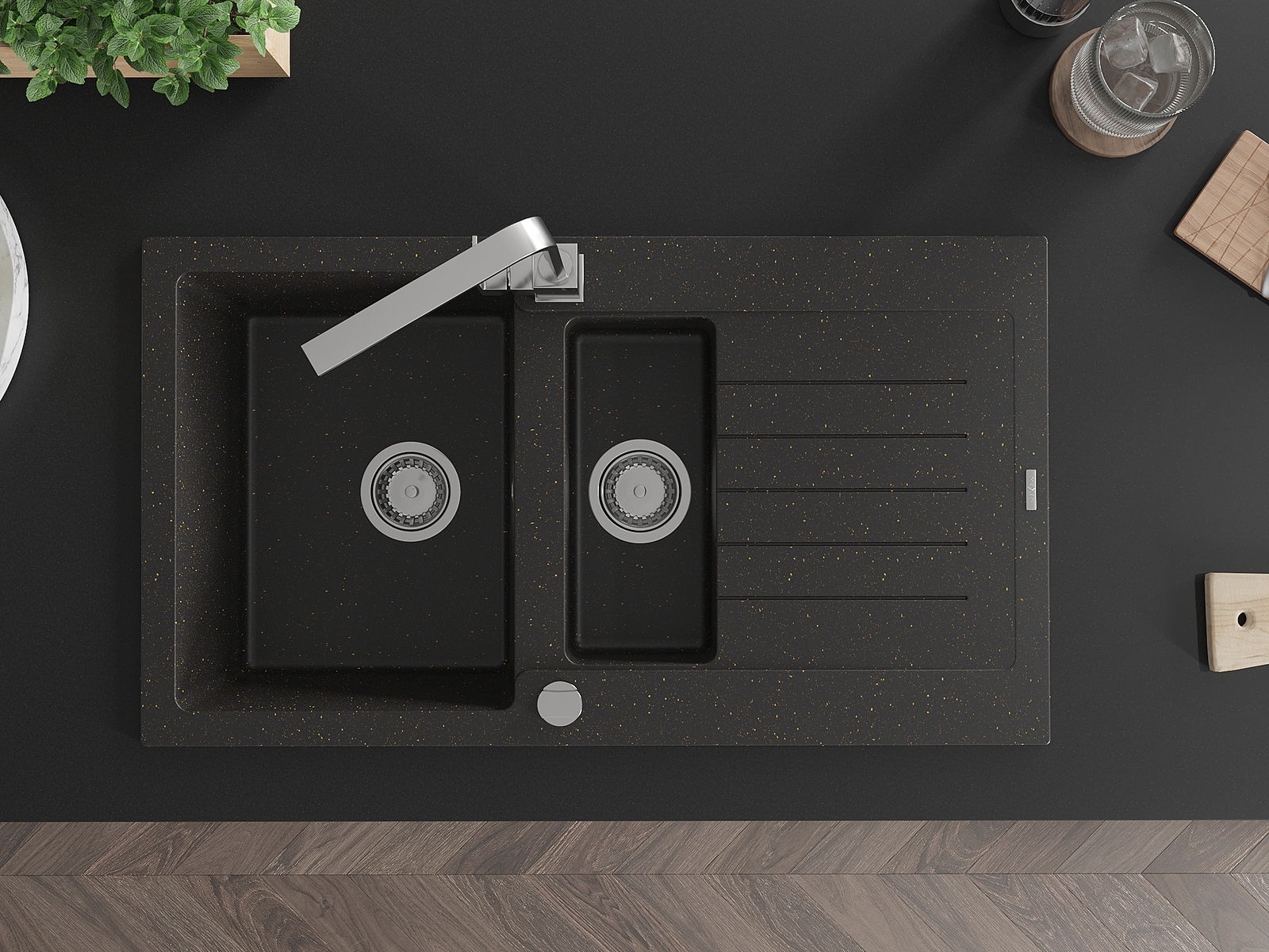 La surface de l'évier est très bien trempée et se distingue par une résistance exceptionnelle aux dommages mécaniques et aux rayures. Ce matériau durable vous permettra de profiter de son bel aspect pendant de nombreuses années.