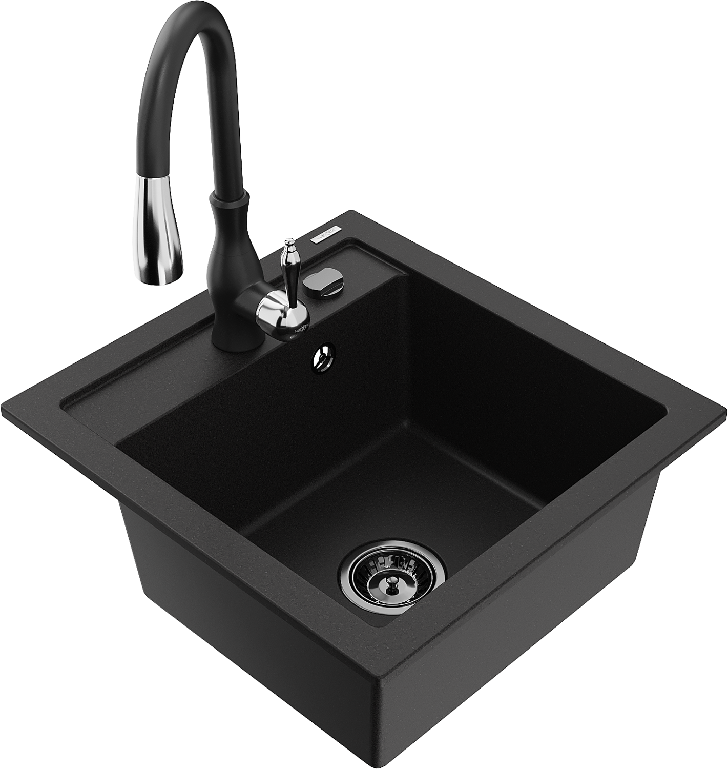 Mexen Vito évier en granit 1-bassin avec robinet de cuisine Savita, noir - 6503-77-672601-70-B