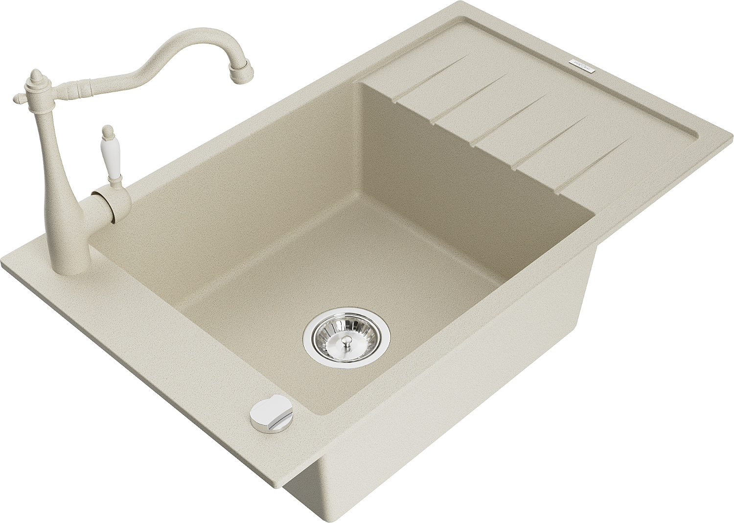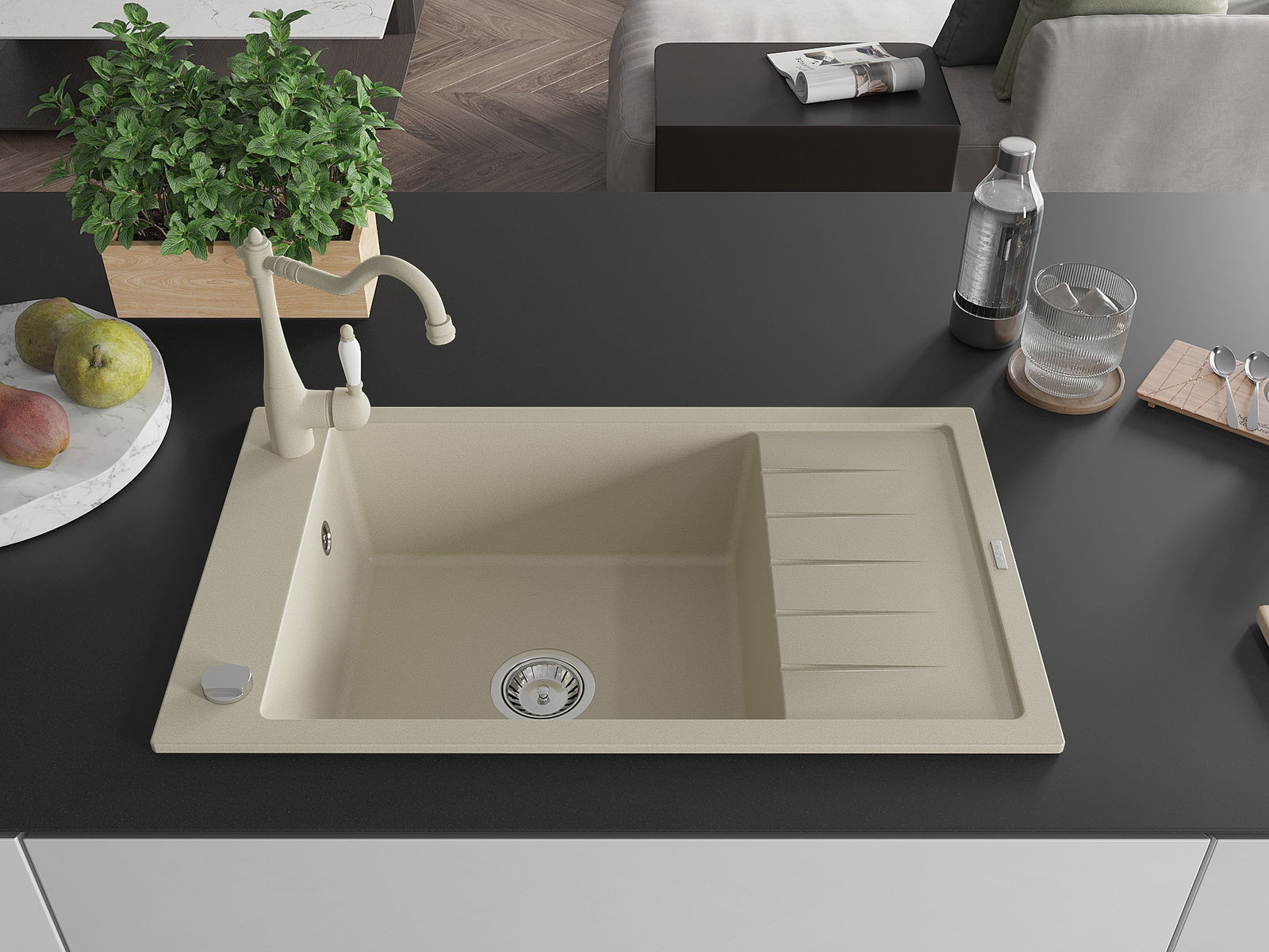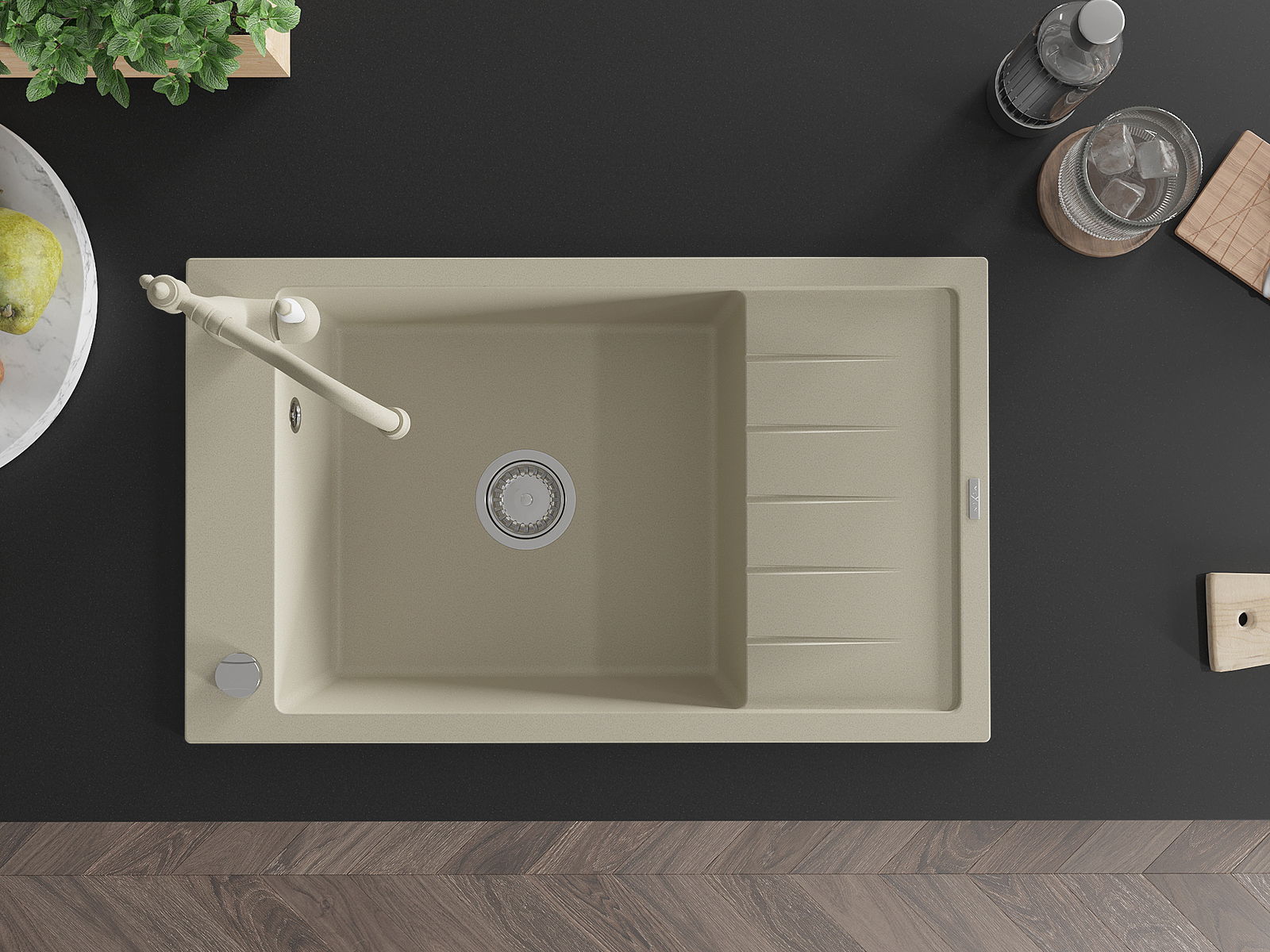 Mexen Elias évier en granit 1 bac avec égouttoir et mitigeur cuisine Carla, beige - 6511-69-670700-69