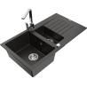 Mexen Matias évier en granit 1,5 bac avec égouttoir et mitigeur de cuisine Rita, noir moucheté - 6502-76-670300-00