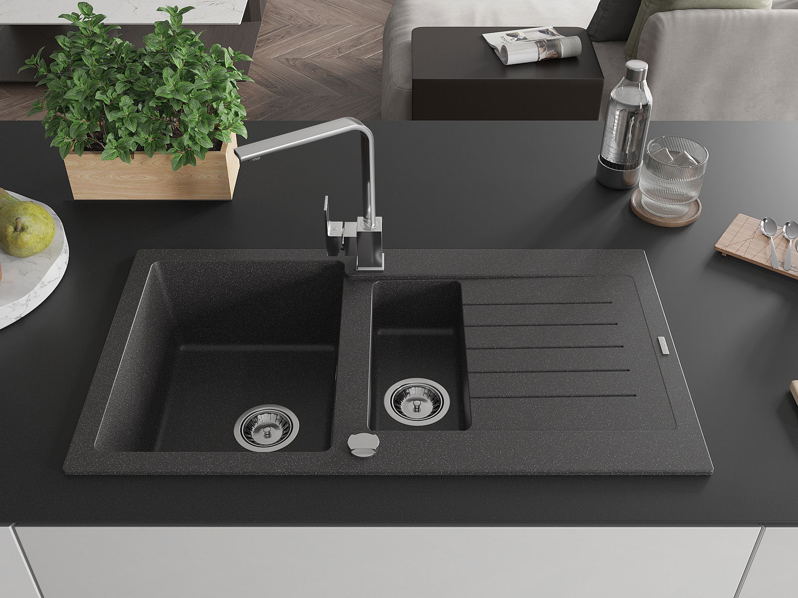 L'évier est fabriqué en granit de haute qualité. Il constitue un complément élégant et surtout pratique pour toute cuisine, quel que soit son style. La qualité et la durabilité du granit garantissent de nombreuses années d'utilisation.