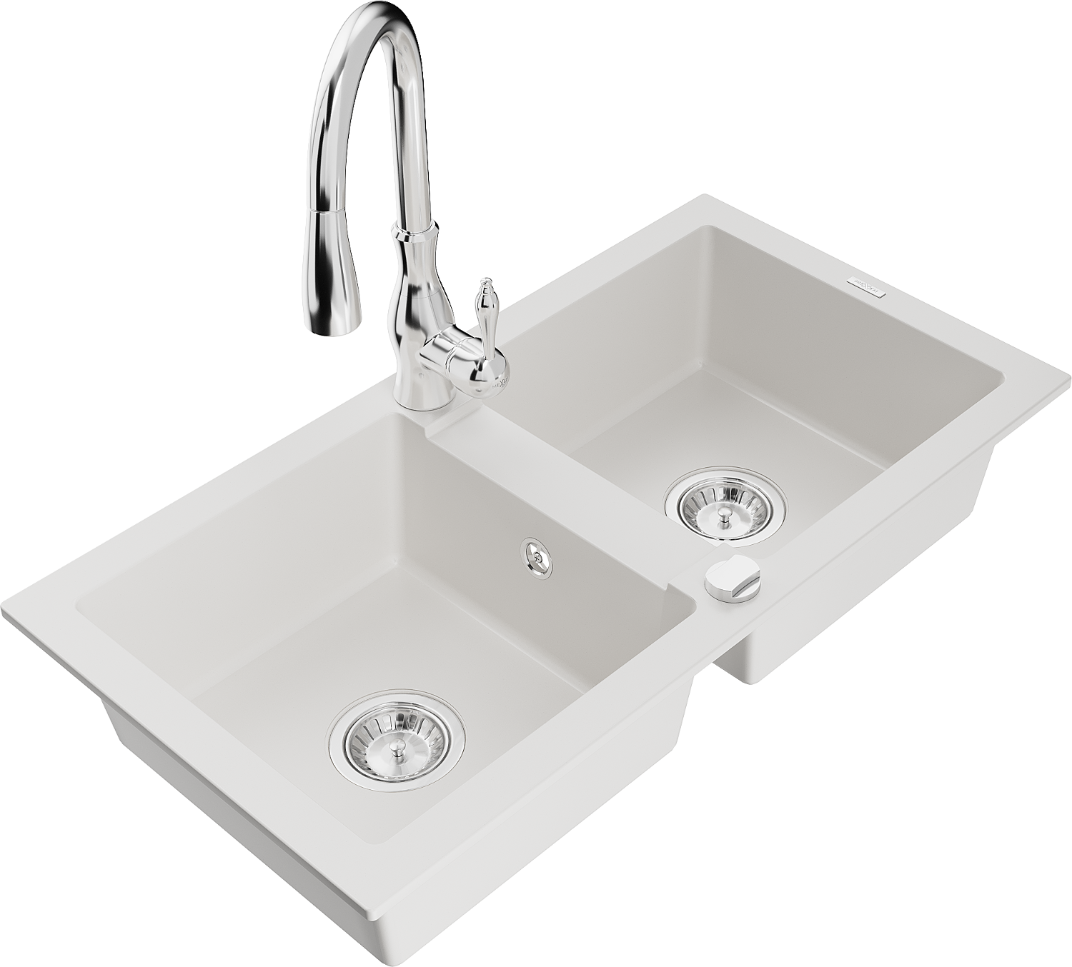 Mexen Mario évier de cuisine en granit à 2 bacs avec robinet de cuisine Savita, blanc - 6504-20-672601-00