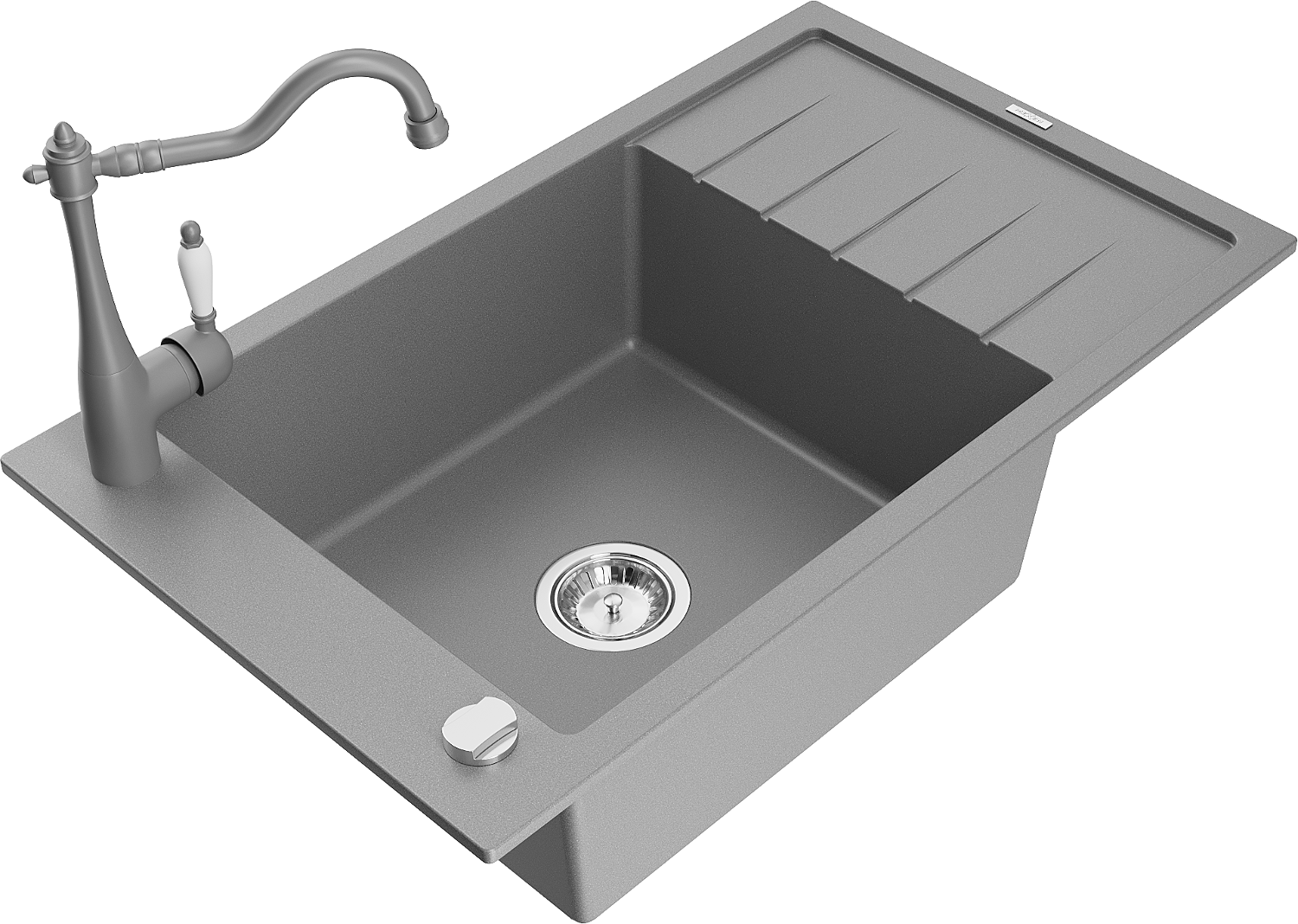 Mexen Elias évier de cuisine en granit à 1 bac avec égouttoir et robinet Carla, gris - 6511-71-670700-71