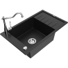 Mexen Elias évier en granit 1 bac avec égouttoir et robinet de cuisine Carla, noir/argent métallique - 6511-73-670700-00