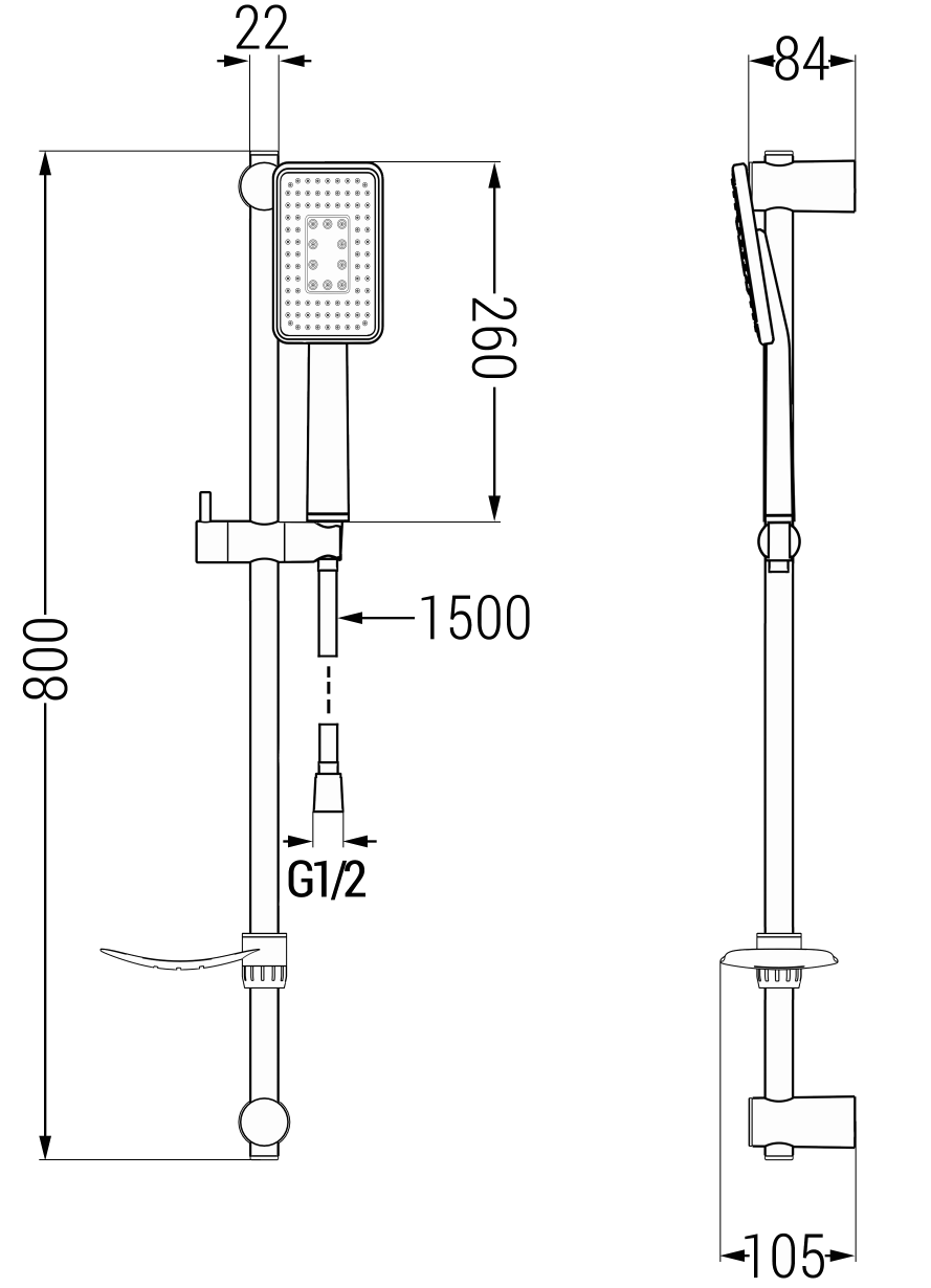 Distance du mur : 105 mm