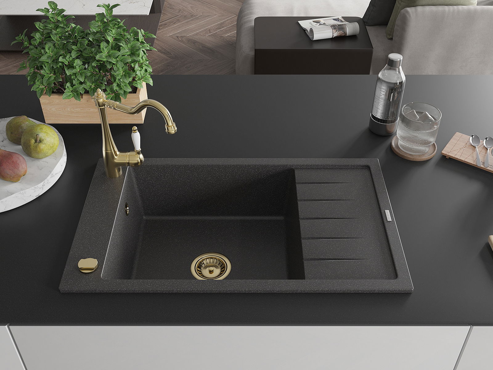 L'évier est fabriqué en granit de haute qualité. Il constitue un complément élégant et surtout pratique pour toute cuisine, quel que soit son style. La qualité et la durabilité du granit garantissent de nombreuses années d'utilisation.