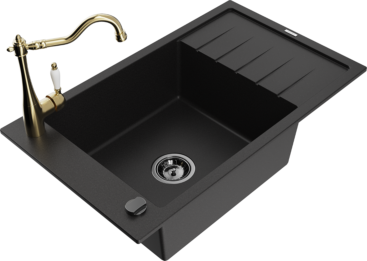 Mexen Elias évier en granit 1 cuve avec égouttoir et robinet de cuisine Carla, noir - 6511-77-670700-50-B