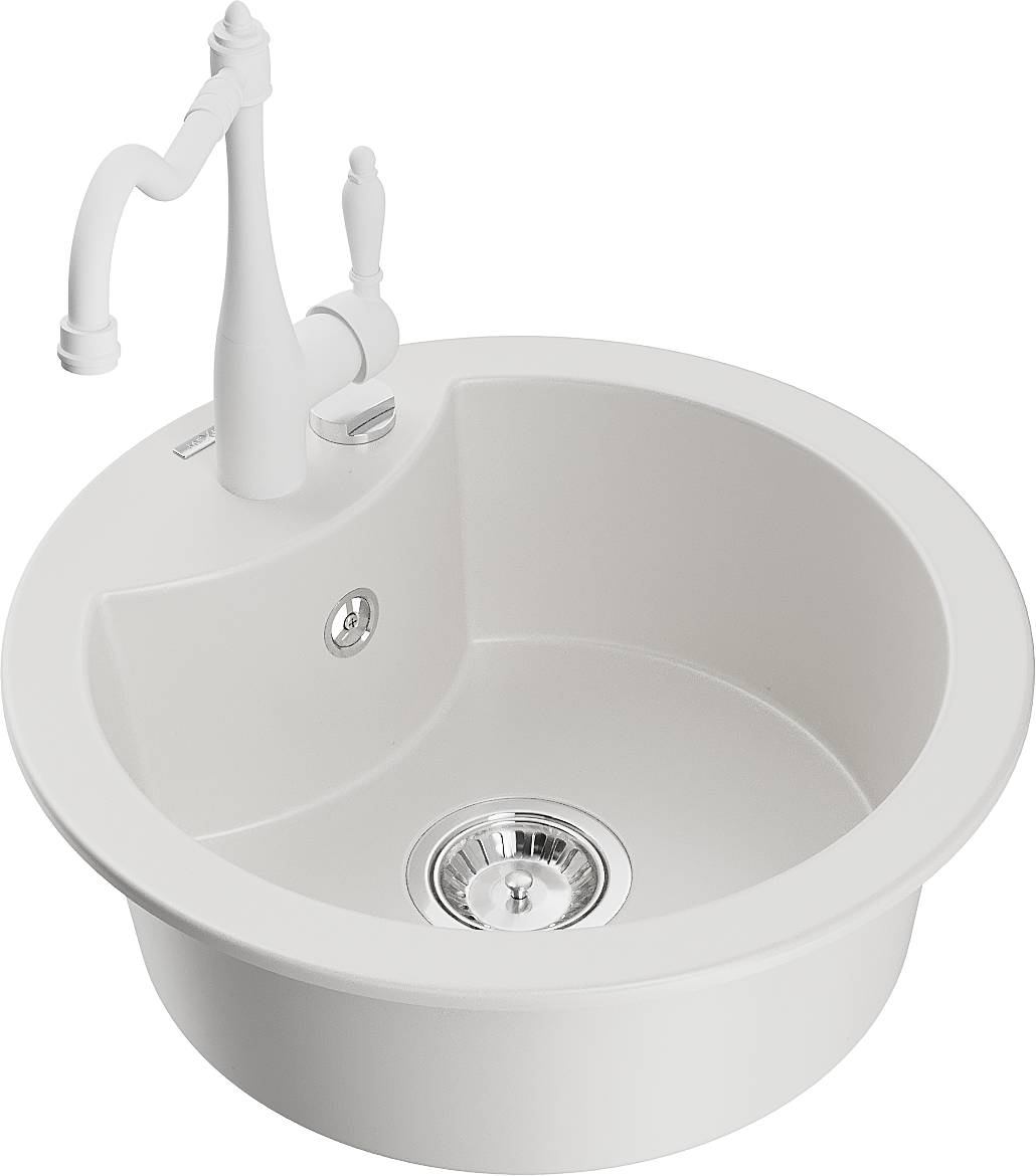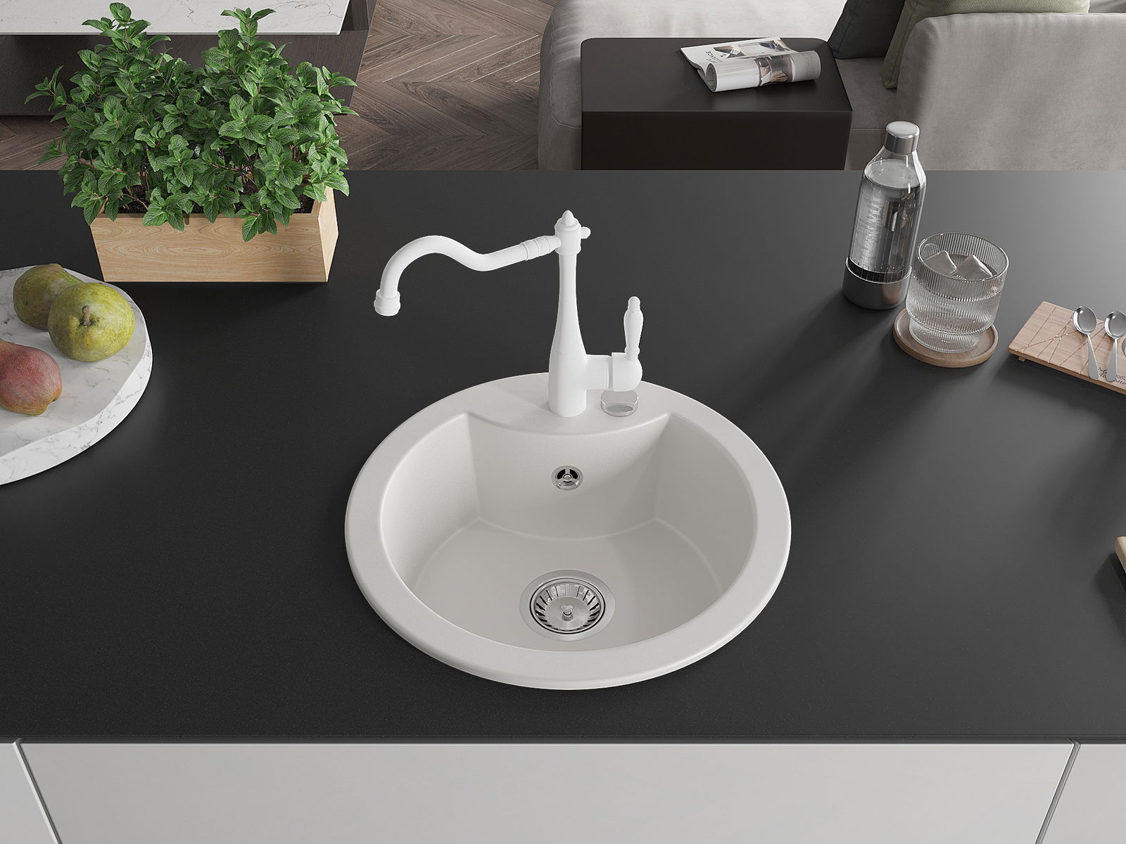 Mexen Diego évier en granit 1 bac avec robinet de cuisine Carla, blanc - 6512-20-670700-20