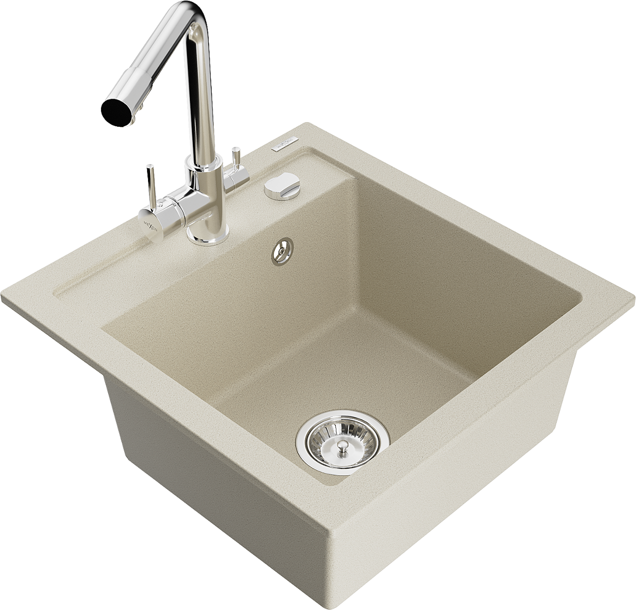 Mexen Vito évier de cuisine en granit 1-bassin avec robinet de cuisine Duero, beige - 6503-69-671600-00