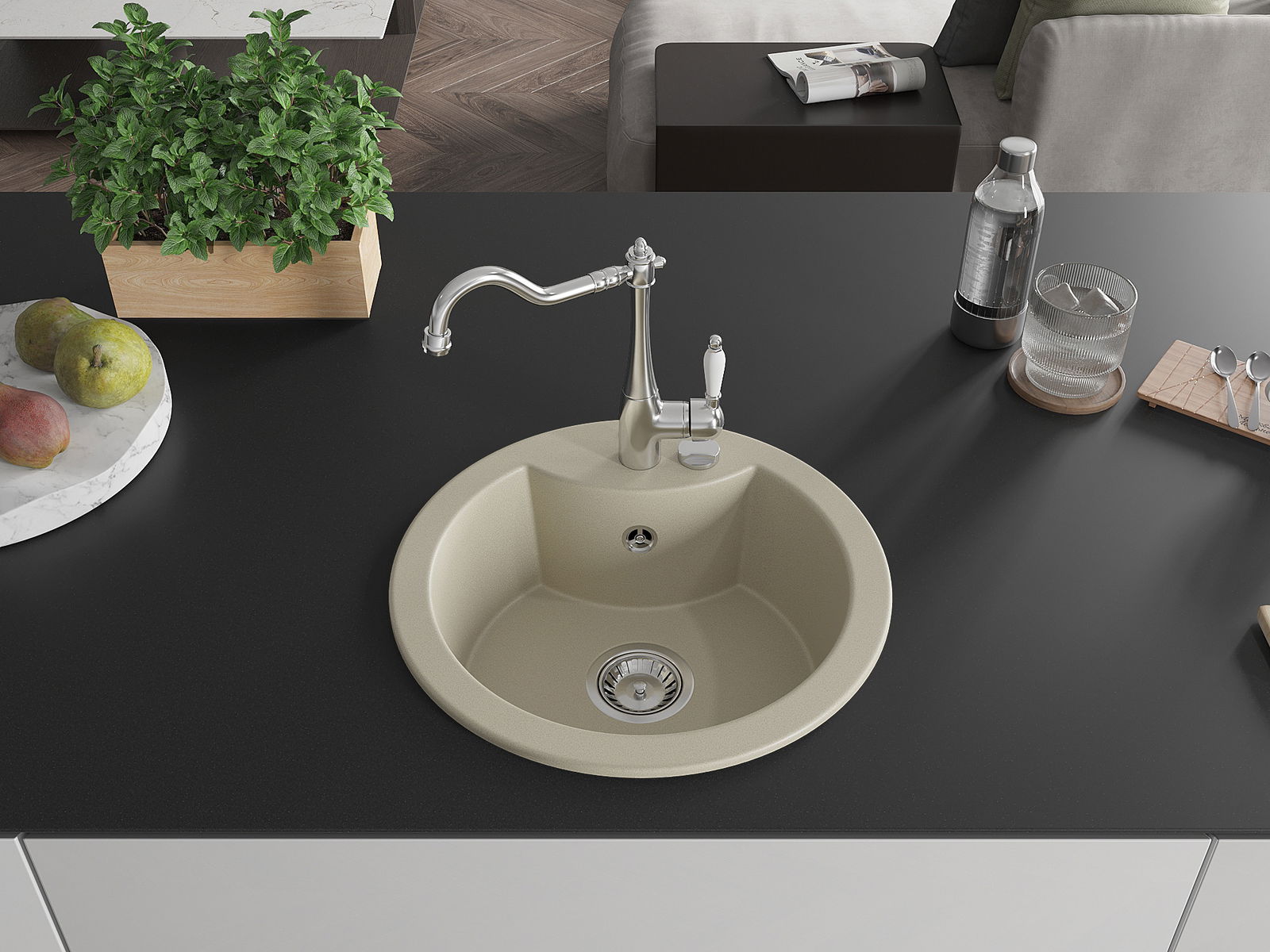 L'évier est fabriqué en granit de haute qualité. Il constitue un complément élégant et surtout pratique pour toute cuisine, quel que soit son style. La qualité et la durabilité du granit garantissent de nombreuses années d'utilisation.