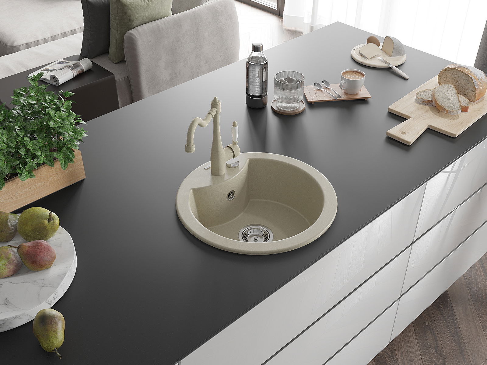 L'évier est fabriqué en granit de haute qualité. Il constitue un complément élégant et surtout pratique pour toute cuisine, quel que soit son style. La qualité et la durabilité du granit garantissent de nombreuses années d'utilisation.