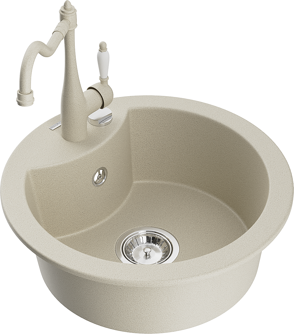 Mexen Diego évier en granit à 1 bac avec robinet de cuisine Carla, beige - 6512-69-670700-69
