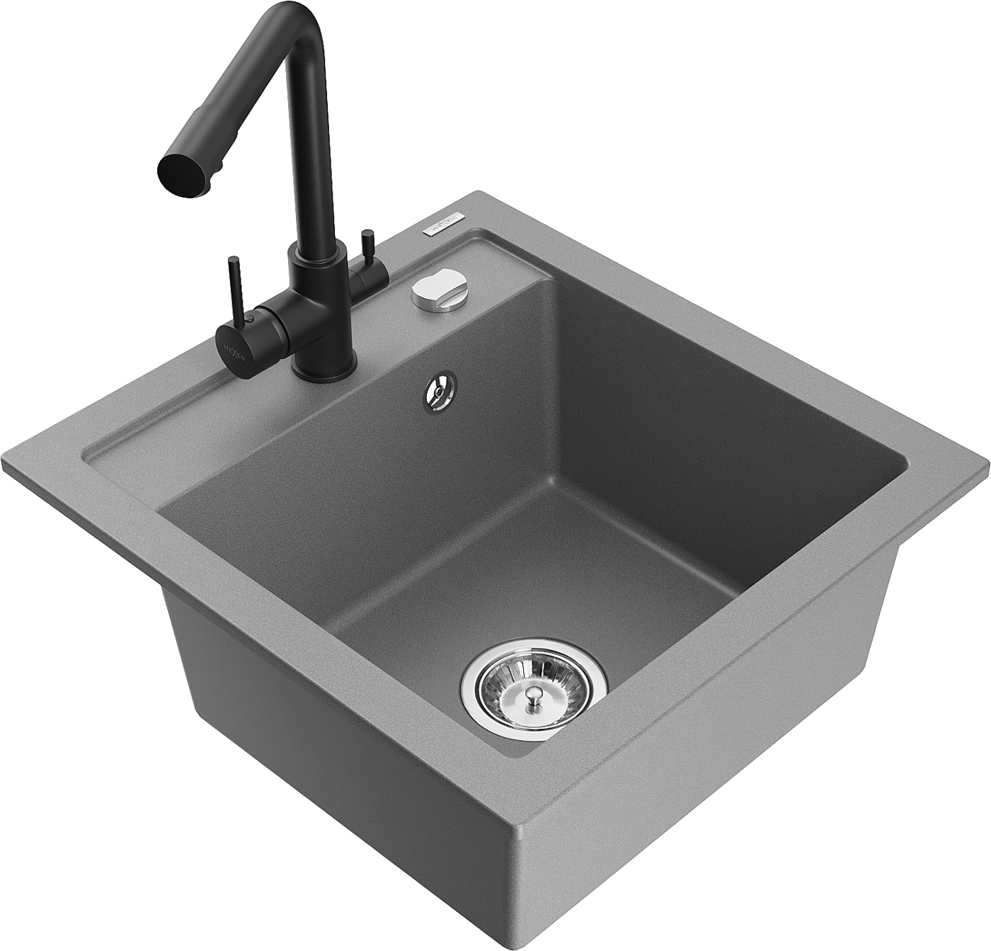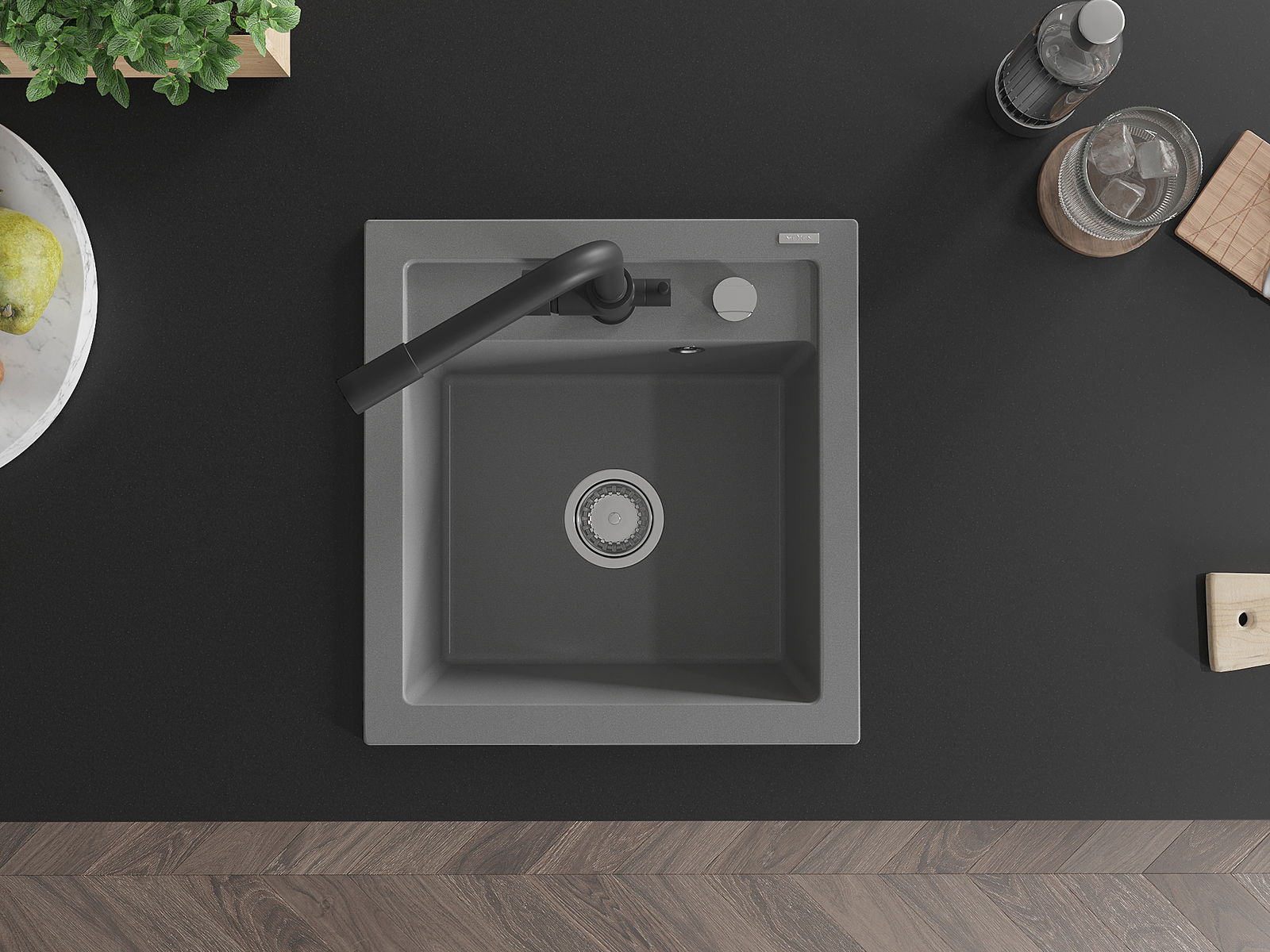 Mexen Vito évier de cuisine en granit 1 bac avec robinet de cuisine Duero, gris - 6503-71-671600-70