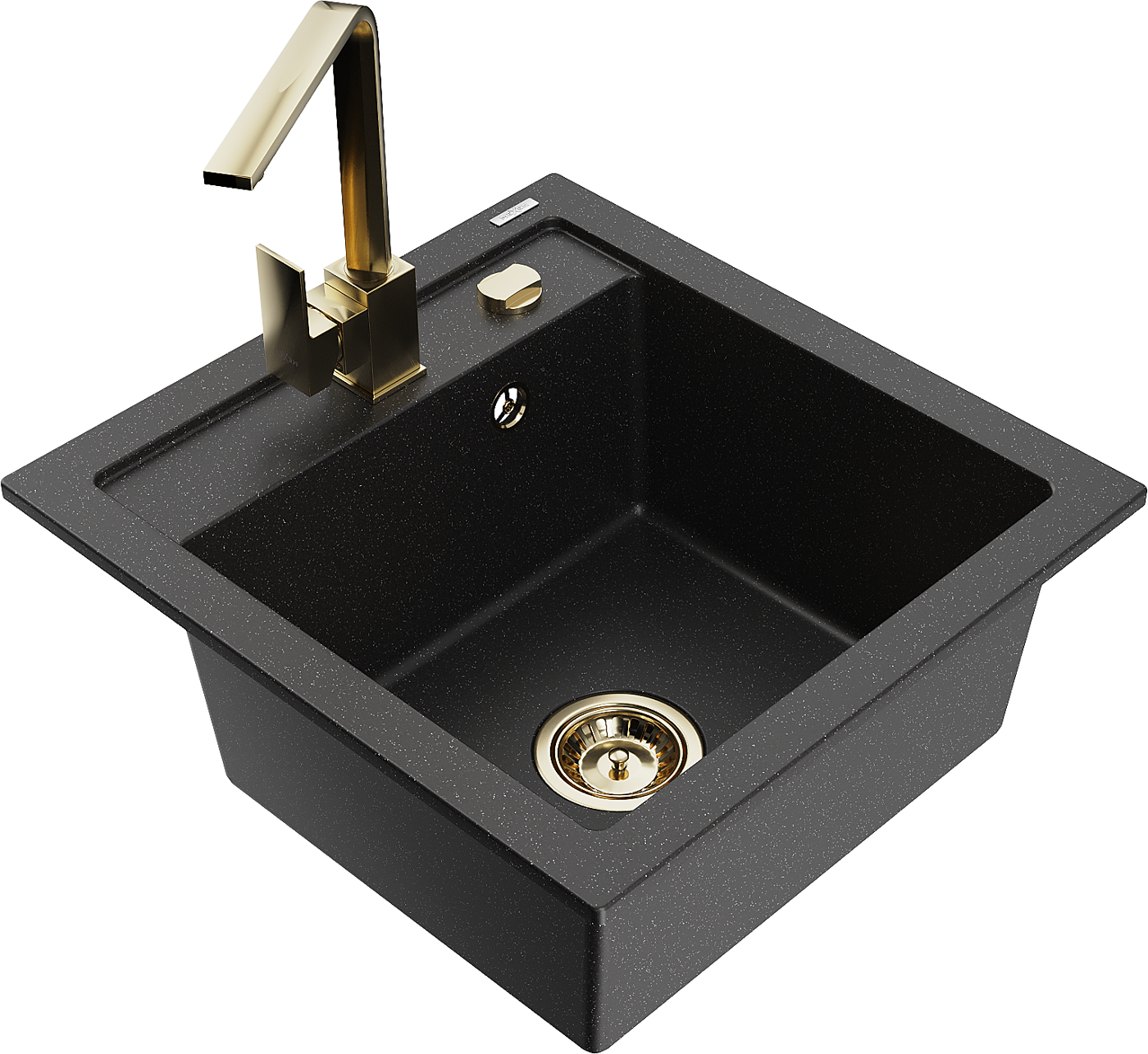 Mexen Vito évier en granit 1 bac avec robinet de cuisine Rita, noir/argent métallisé - 6503-73-670300-50