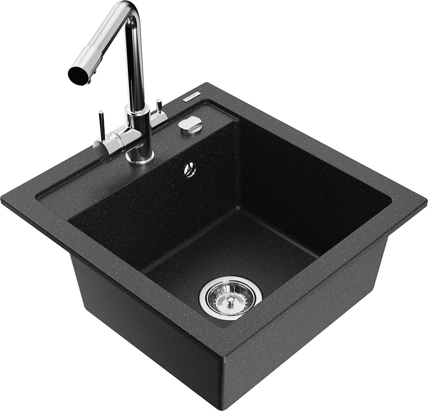 Mexen Vito évier en granit 1 bac avec mitigeur cuisine Duero, noir/métallique argent - 6503-73-671600-00