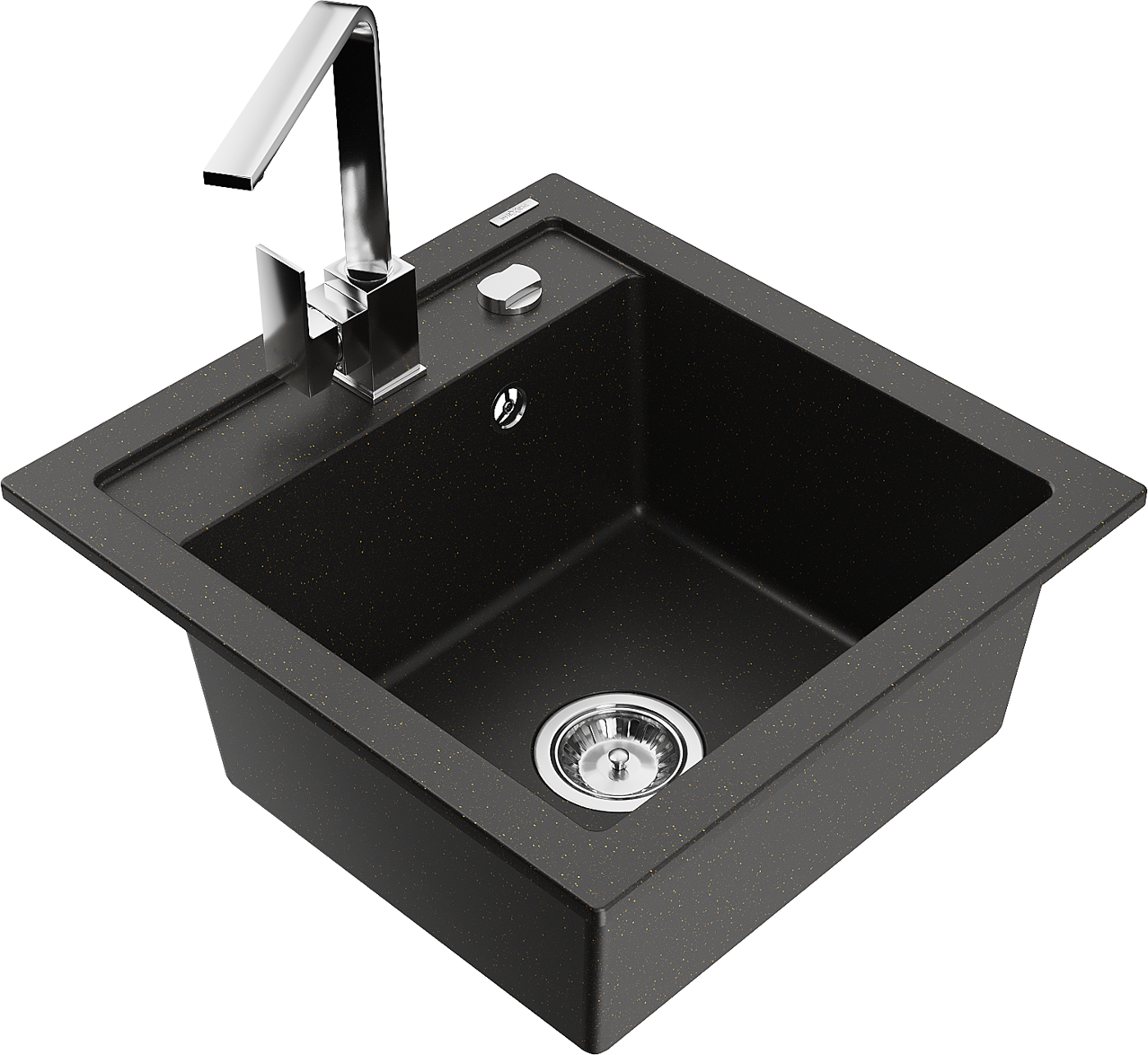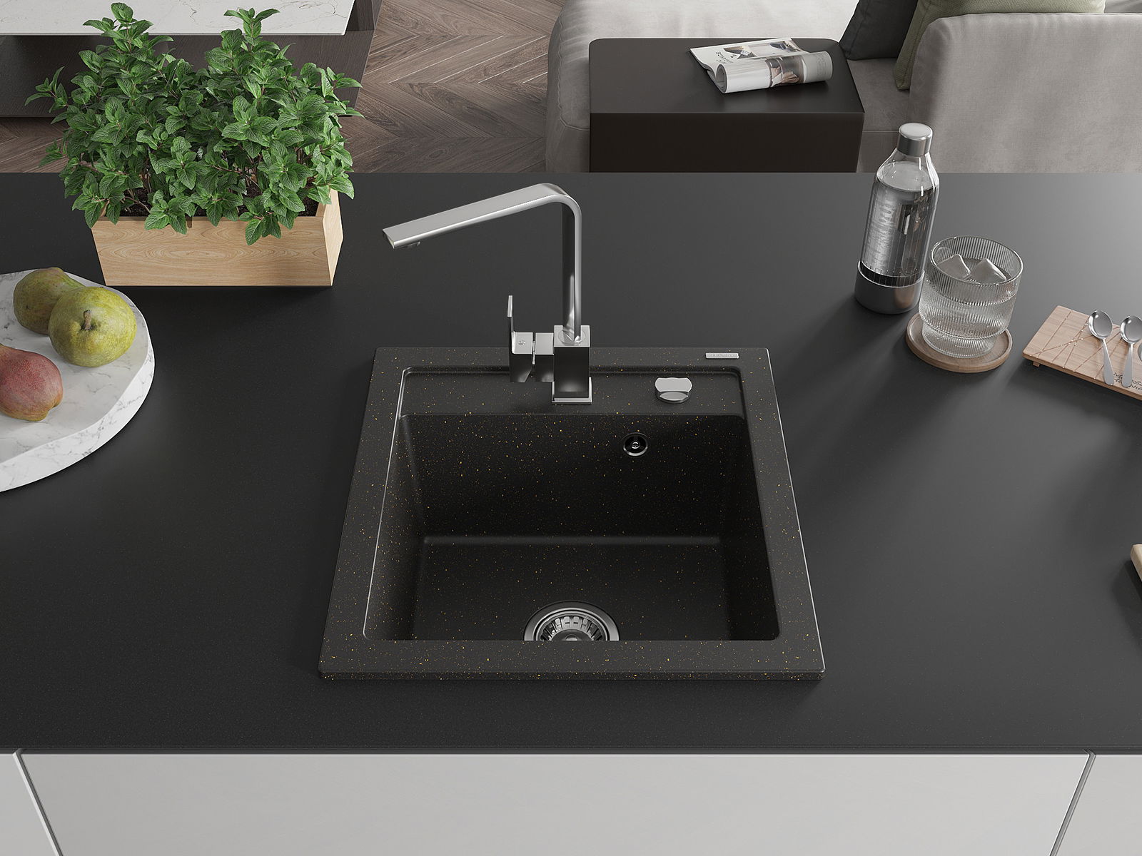Mexen Vito évier en granit 1-bac avec robinet de cuisine Rita, noir/or métallique - 6503-75-670300-00