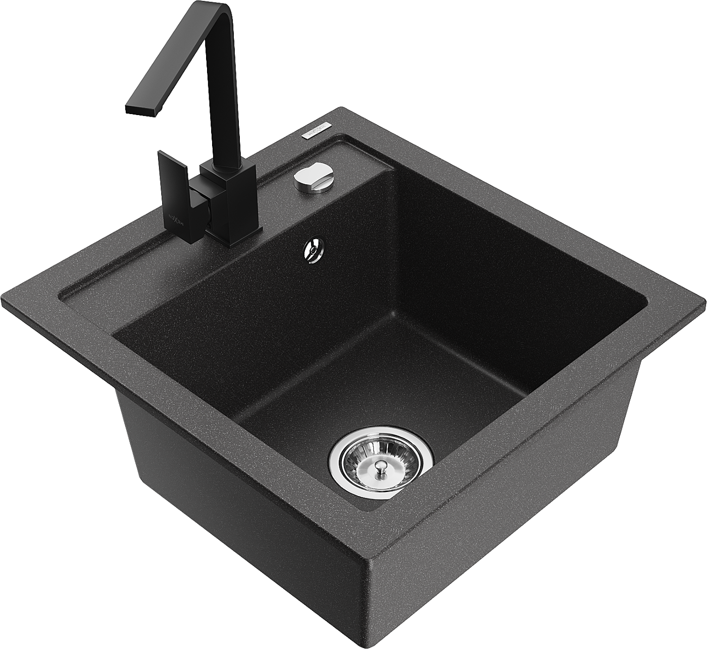 Mexen Vito évier en granit 1 bac avec mitigeur de cuisine Rita, noir moucheté - 6503-76-670300-70