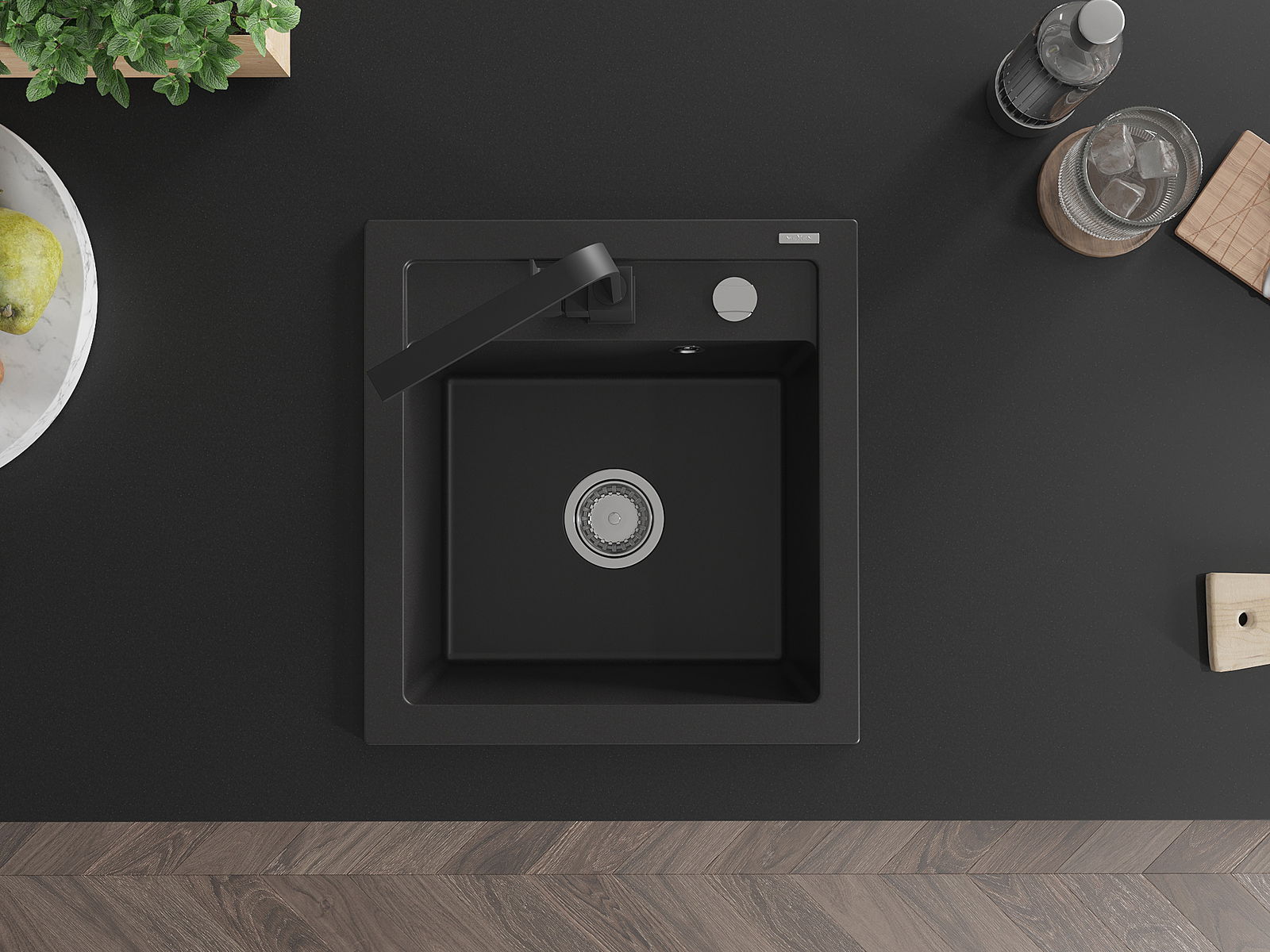 Mexen Vito évier en granit 1 bac avec robinet de cuisine Rita, noir - 6503-77-670300-70