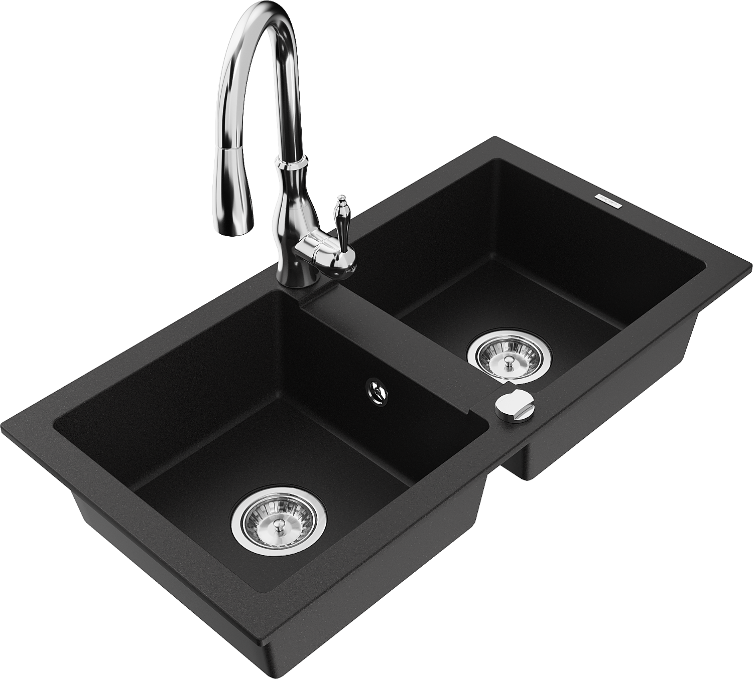 Mexen Mario évier de cuisine en granit à 2 bacs avec robinet de cuisine Savita, noir - 6504-77-672601-00