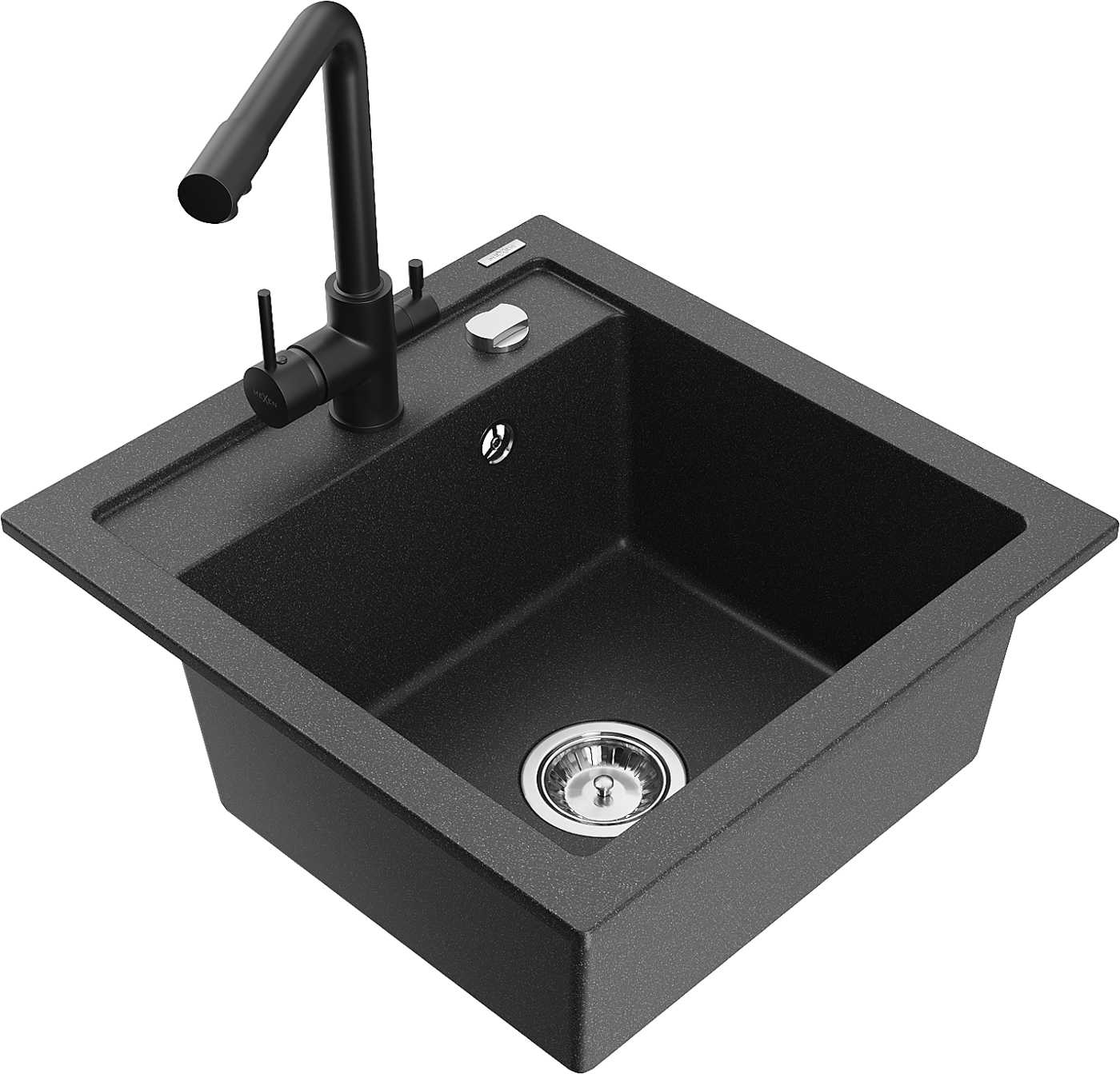 Mexen Vito évier en granit 1 bac avec robinet de cuisine Duero, noir tacheté - 6503-76-671600-70