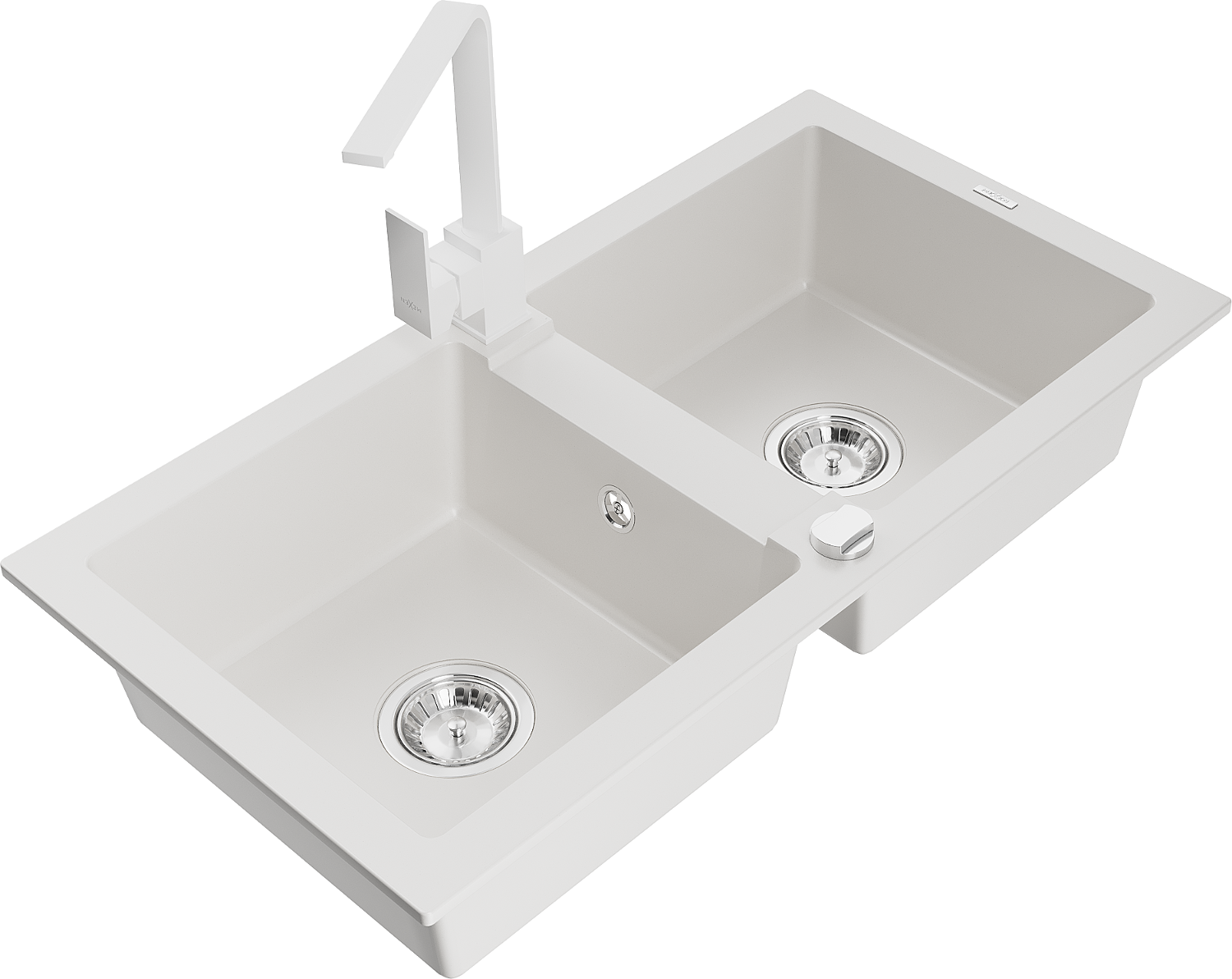 Mexen Mario évier en granit à 2 bacs avec robinet de cuisine Rita, blanc - 6504-20-670300-20