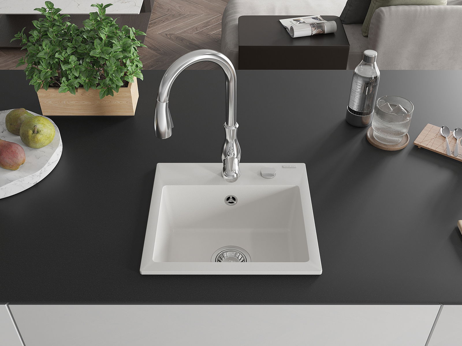 La surface de l'évier est très bien trempée et se distingue par une résistance exceptionnelle aux dommages mécaniques et aux rayures. Ce matériau durable vous permettra de profiter de son bel aspect pendant de nombreuses années.