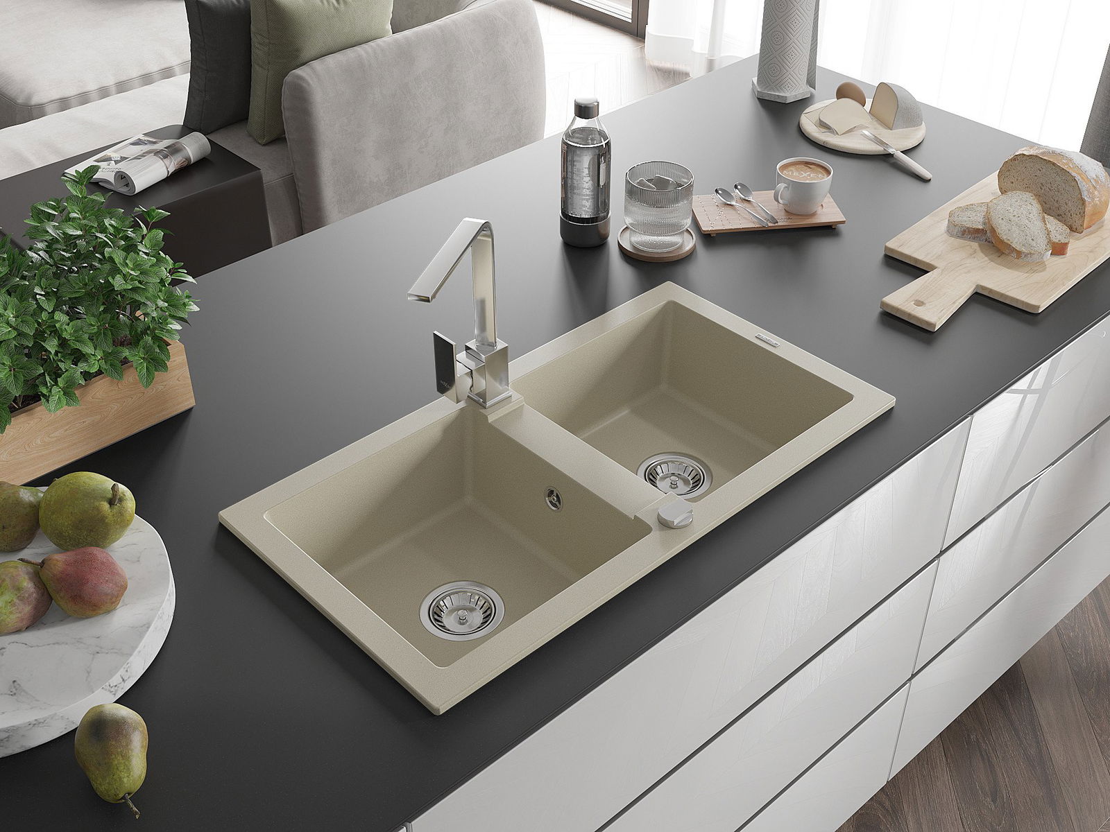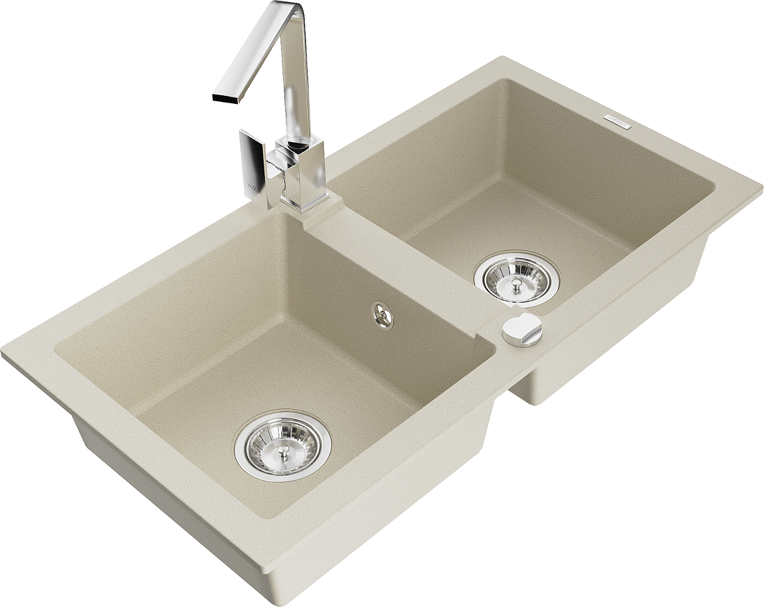 Mexen Mario évier en granit à 2 cuves avec mitigeur de cuisine Rita, beige - 6504-69-670300-00