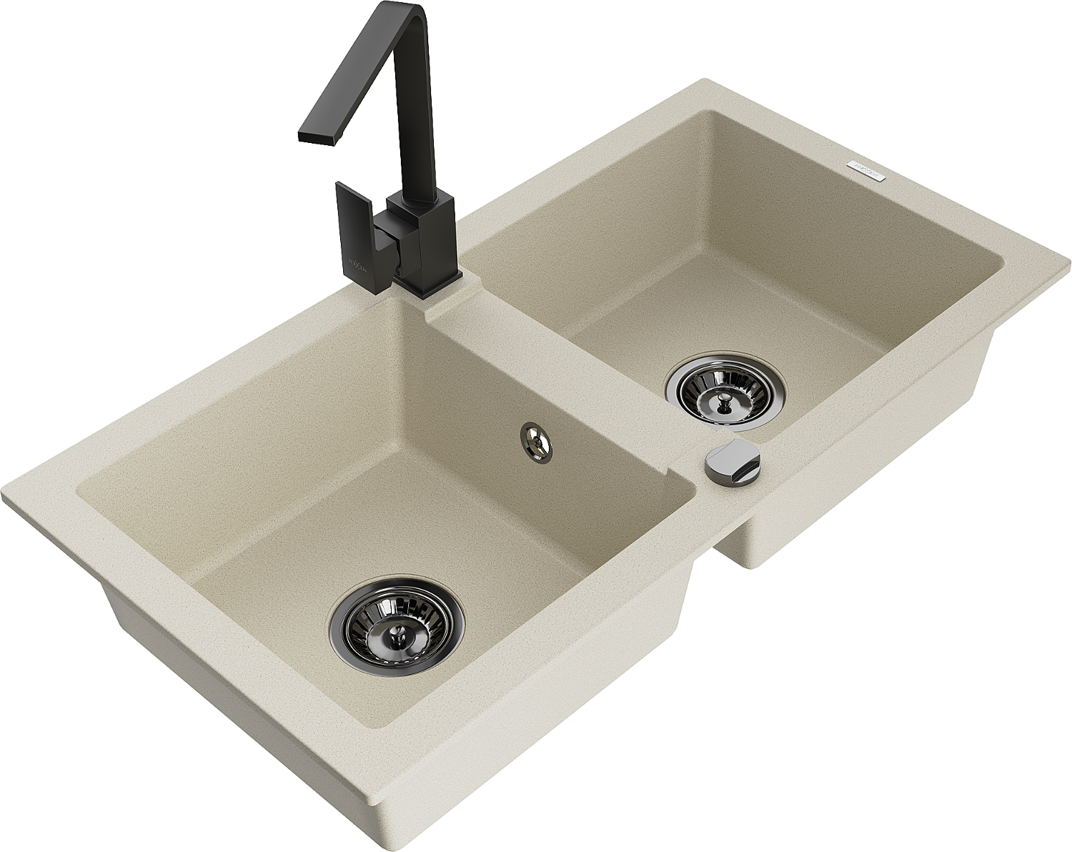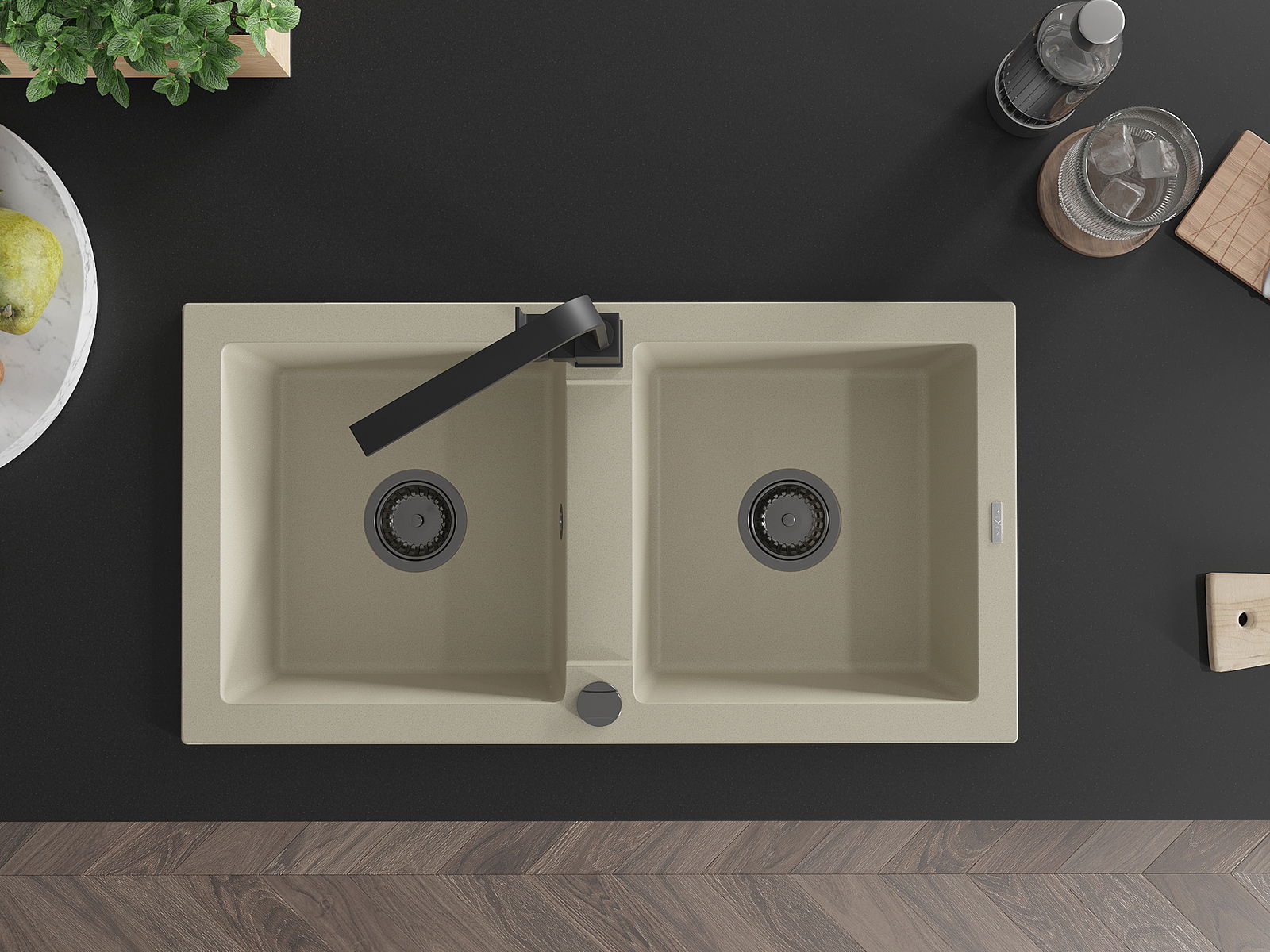 Mexen Mario évier en granit 2 cuves avec mitigeur de cuisine Rita, beige - 6504-69-670300-70