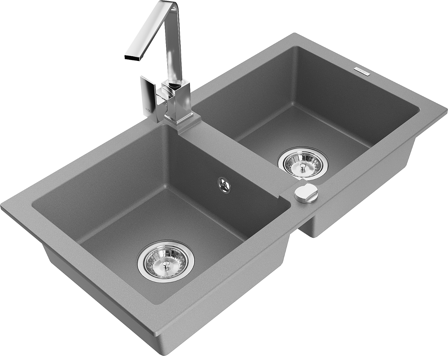 Mexen Mario évier en granit 2 bacs avec robinet de cuisine Rita, gris - 6504-71-670300-00