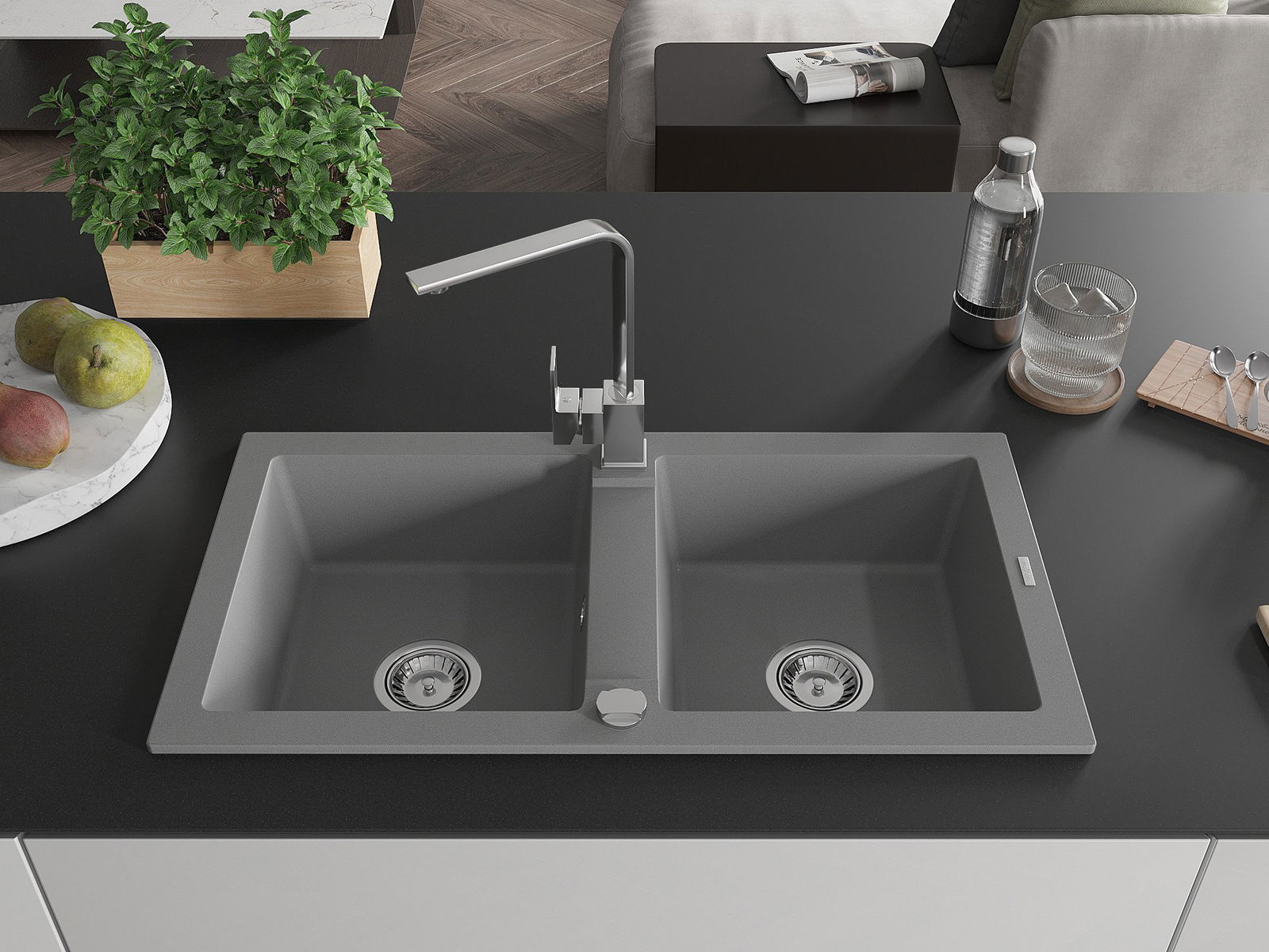 La surface de l'évier est très bien trempée et se distingue par une résistance exceptionnelle aux dommages mécaniques et aux rayures. Ce matériau durable vous permettra de profiter de son bel aspect pendant de nombreuses années.