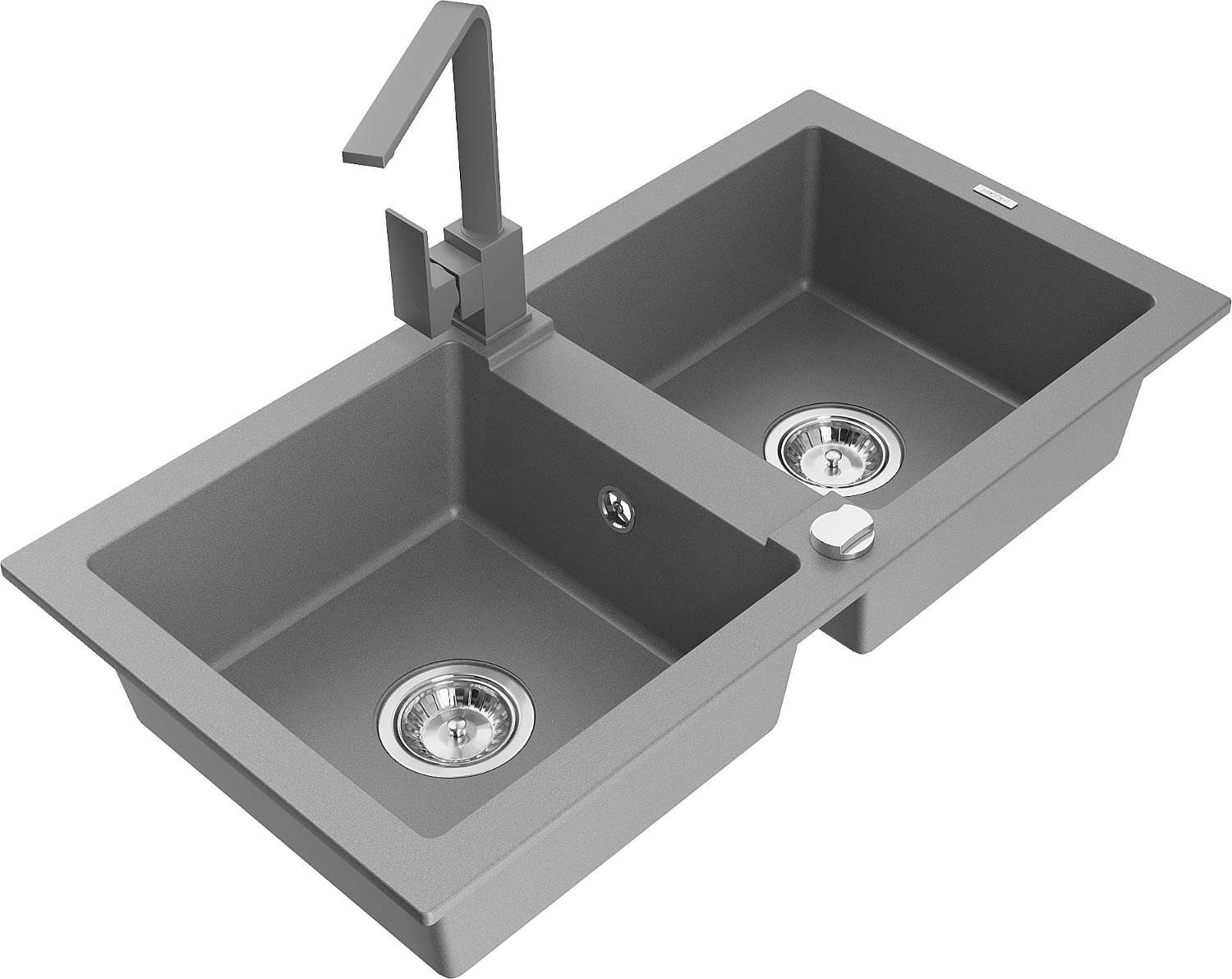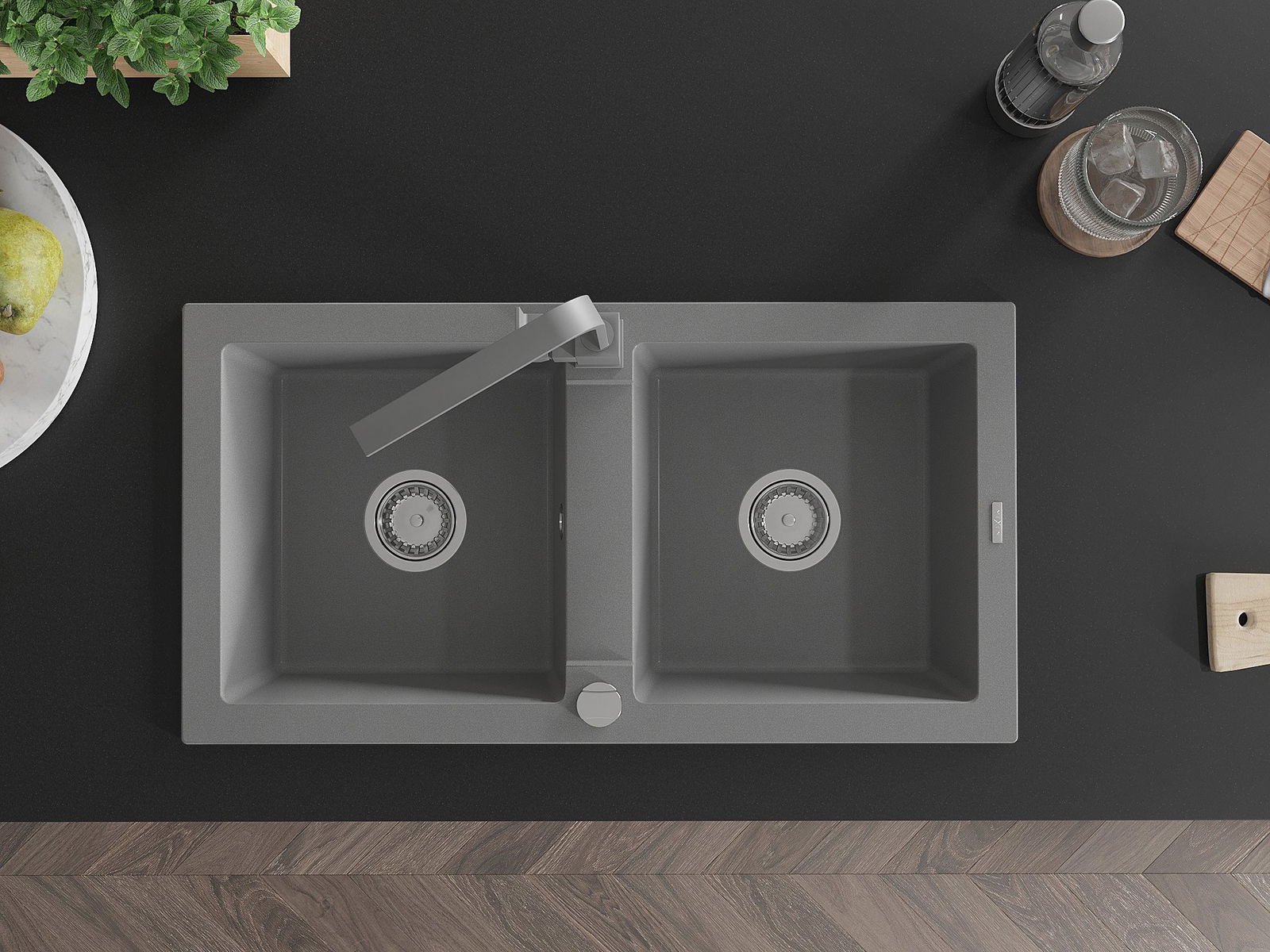 Mexen Mario évier en granit à 2 bacs avec robinet de cuisine Rita, gris - 6504-71-670300-71