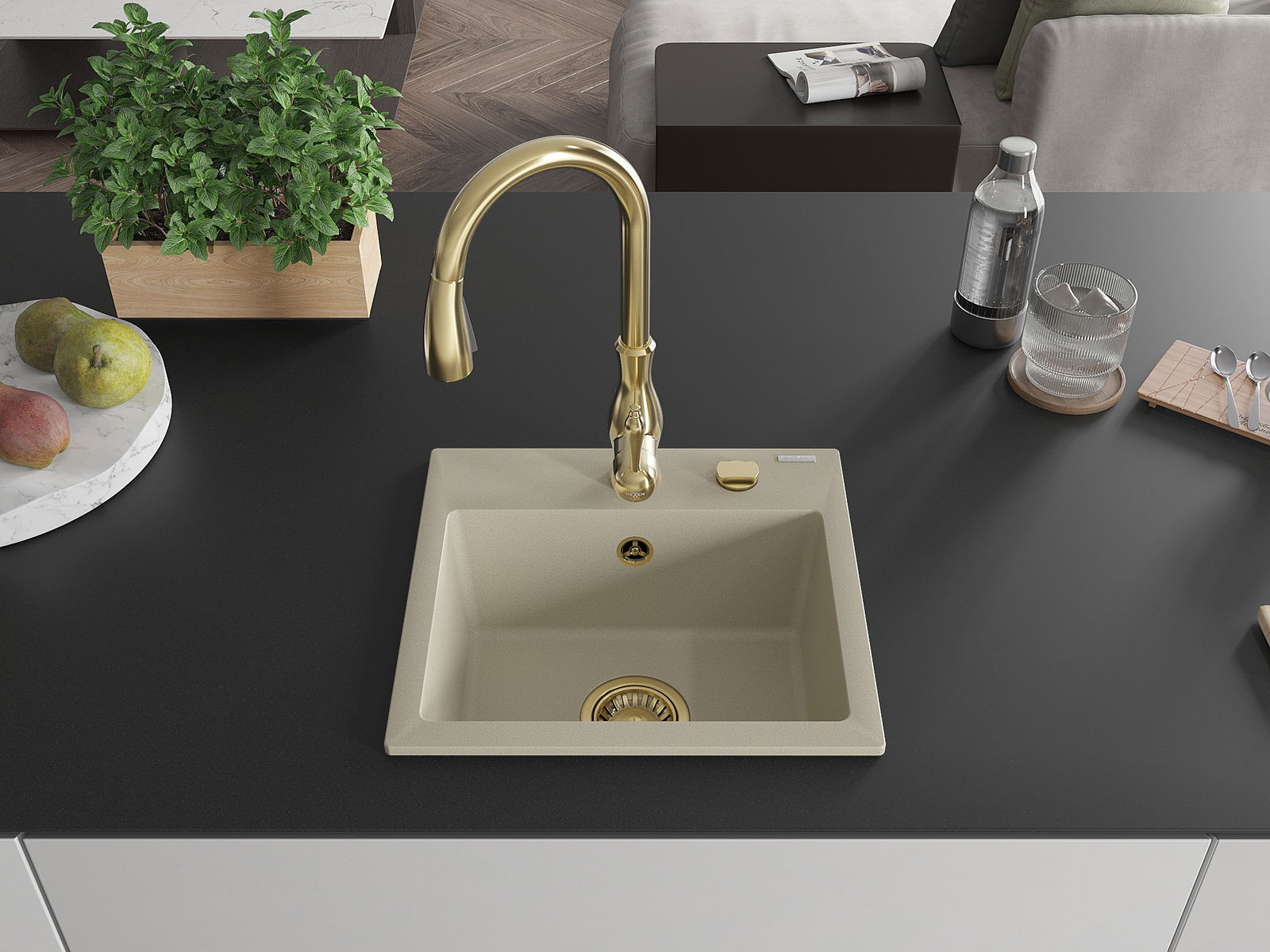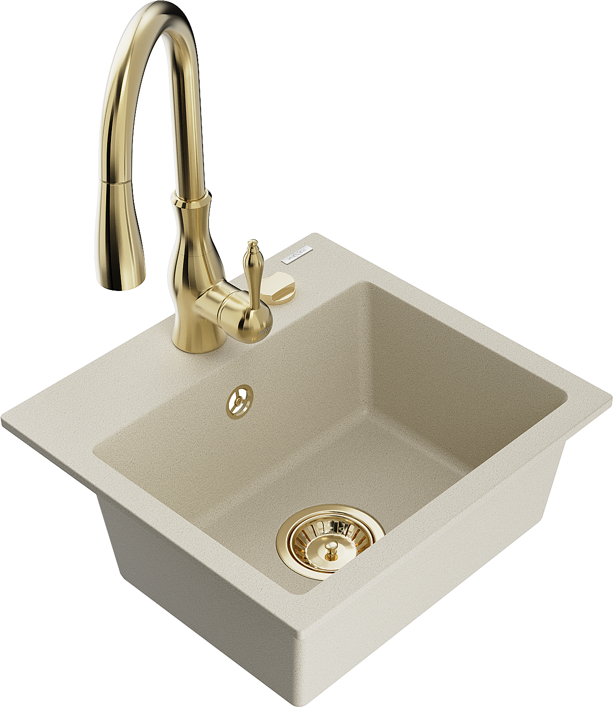 Mexen Milo évier en granit 1-bassin avec robinet de cuisine Savita, beige - 6505-69-672601-50