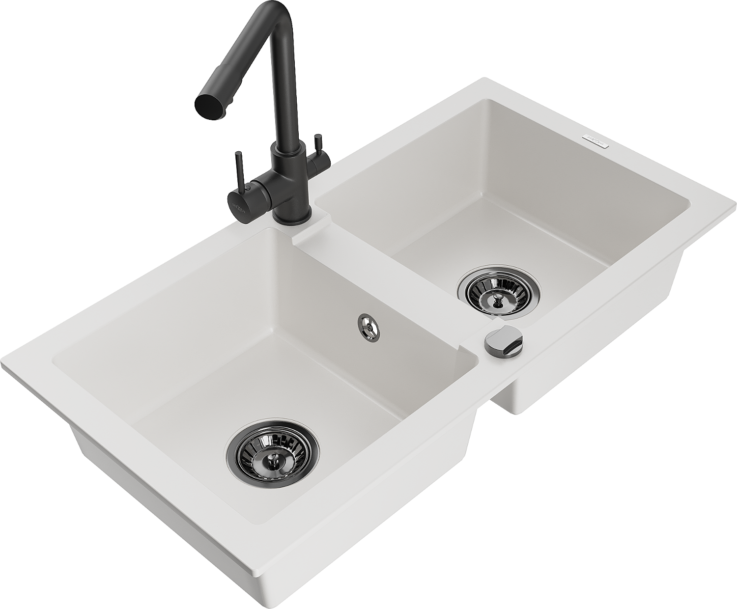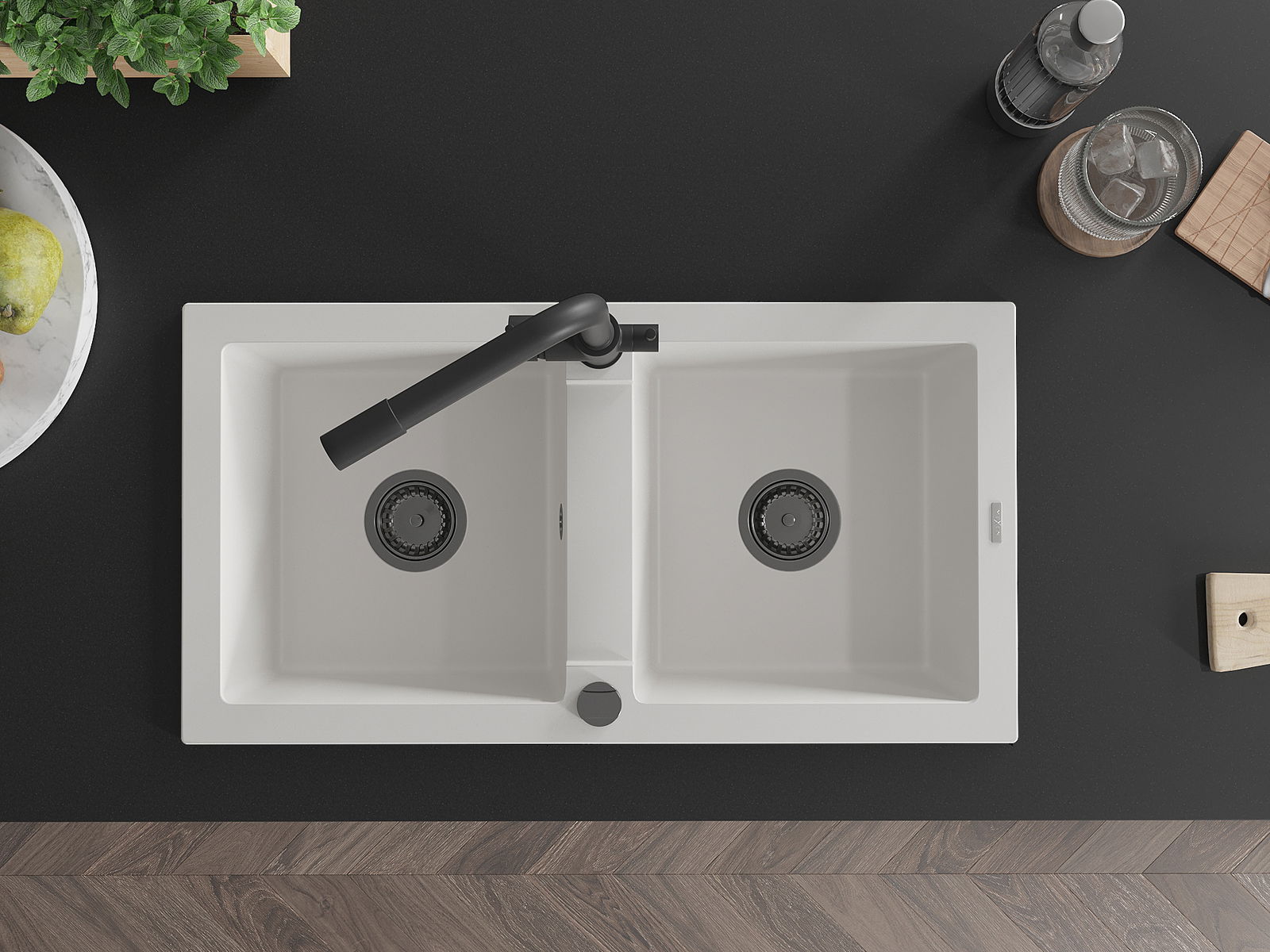 Mexen Mario évier en granit 2 bacs avec robinet de cuisine Duero, blanc - 6504-20-671600-70