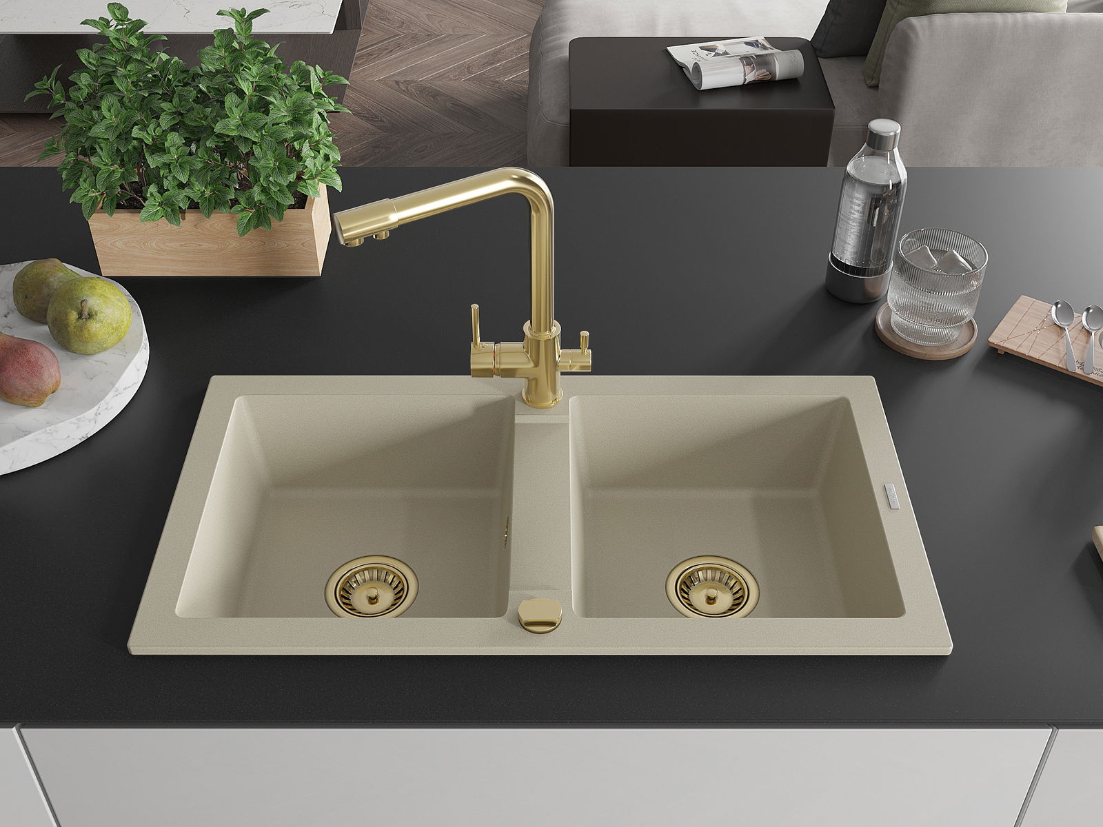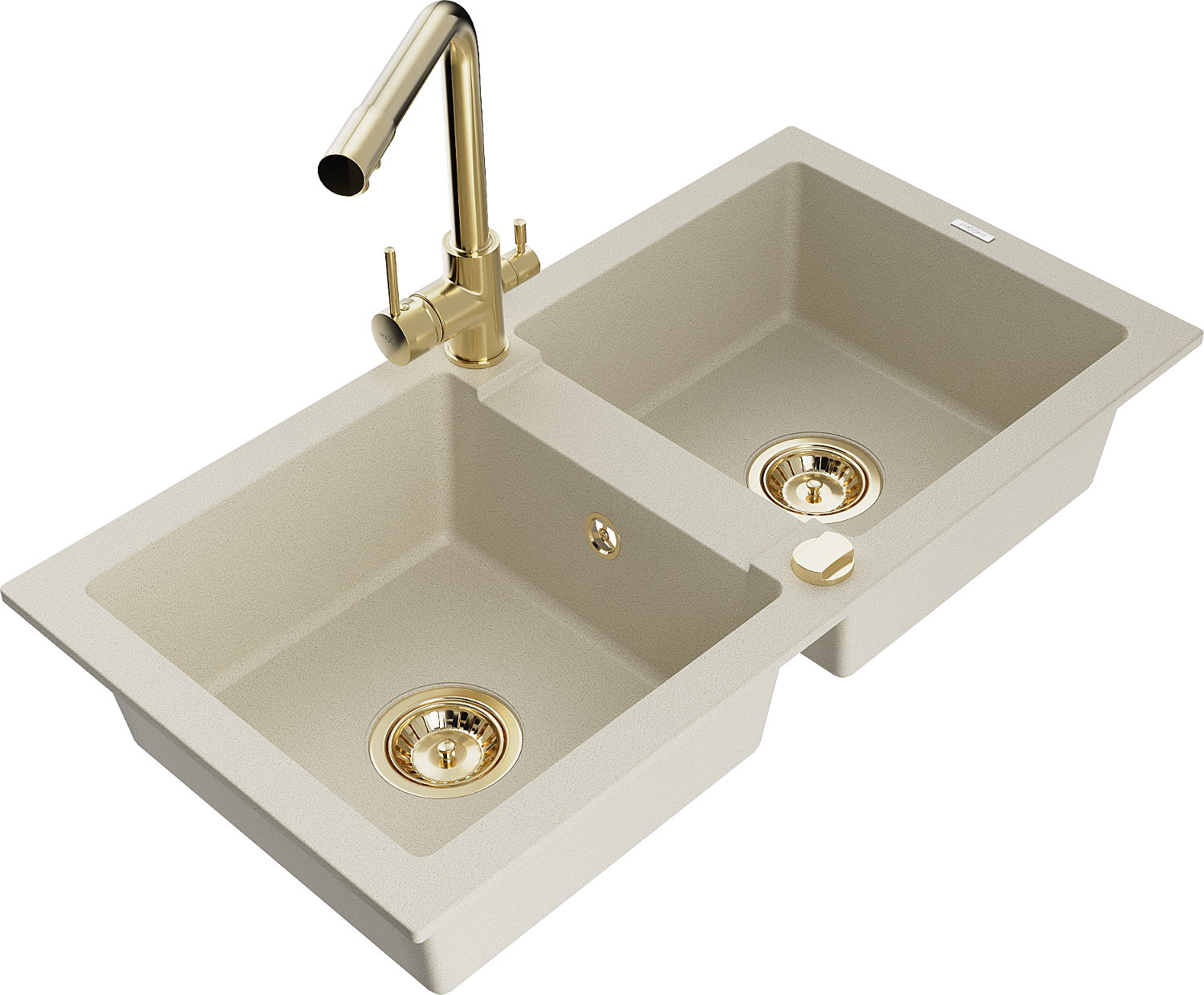 Mexen Mario évier de cuisine en granit 2 bacs avec robinet de cuisine Duero, beige - 6504-69-671600-50
