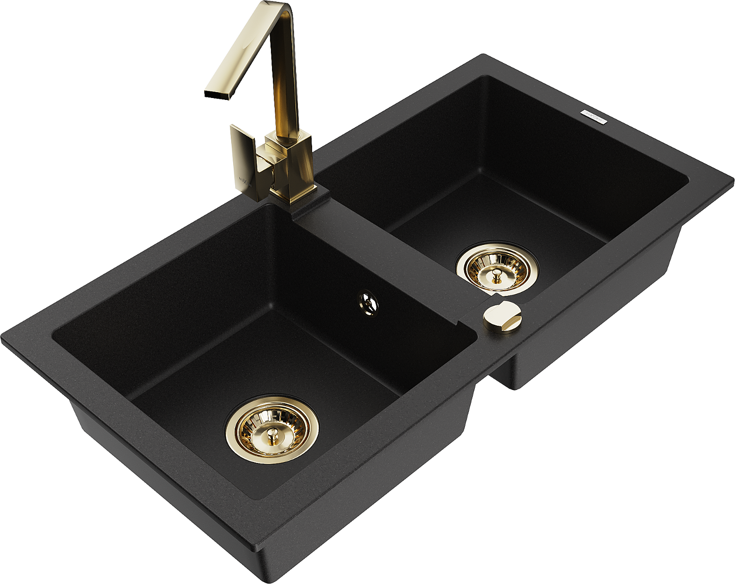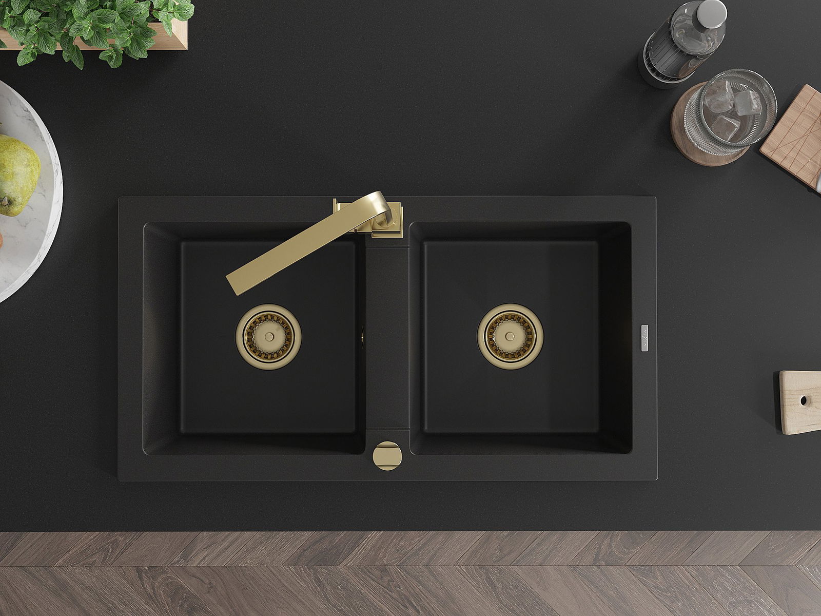 Mexen Mario évier en granit à 2 bacs avec mitigeur de cuisine Rita, noir - 6504-77-670300-50