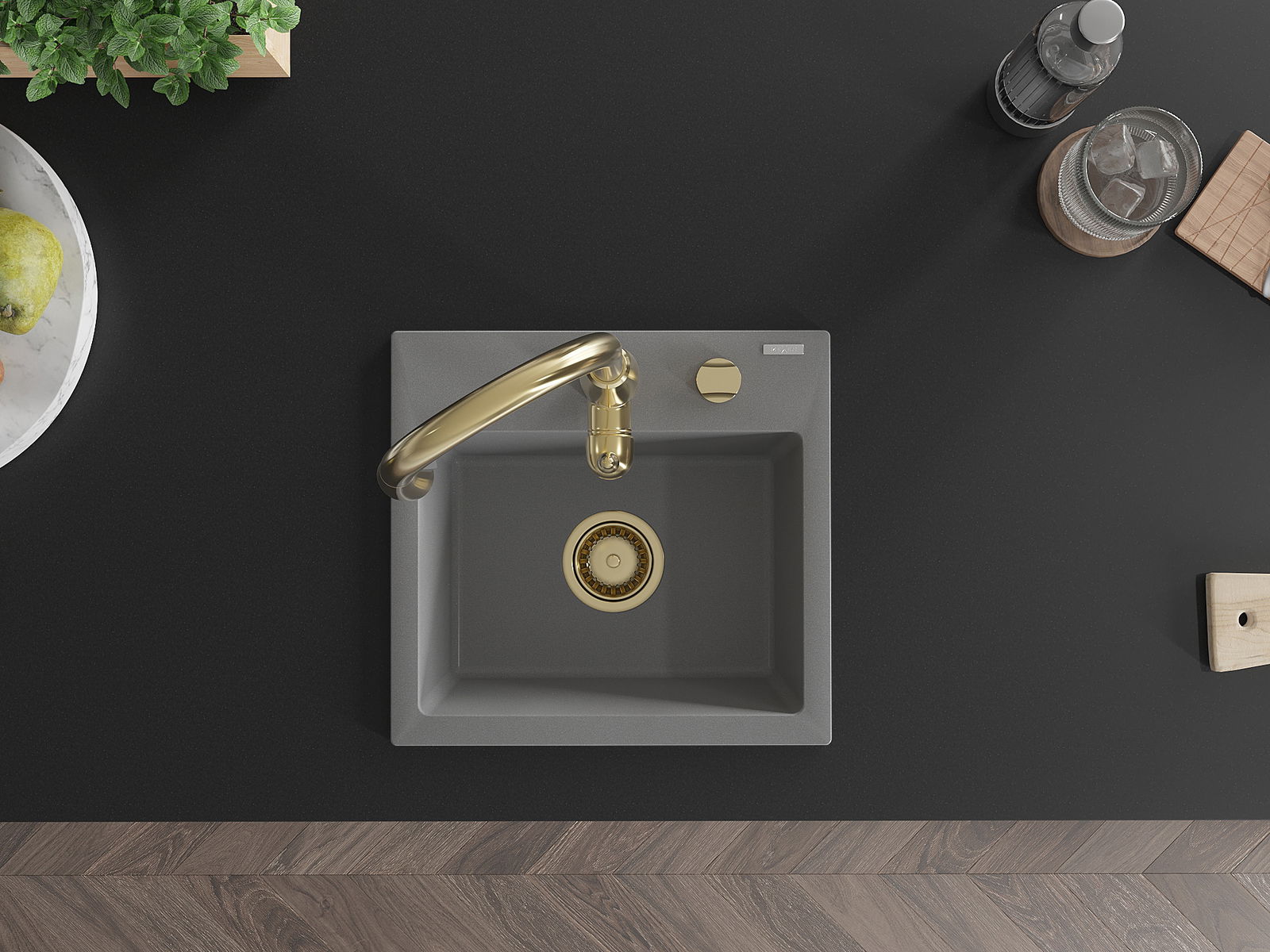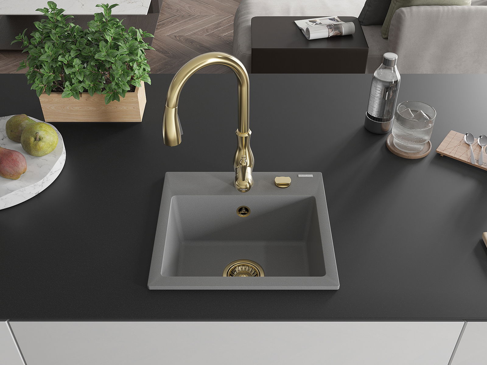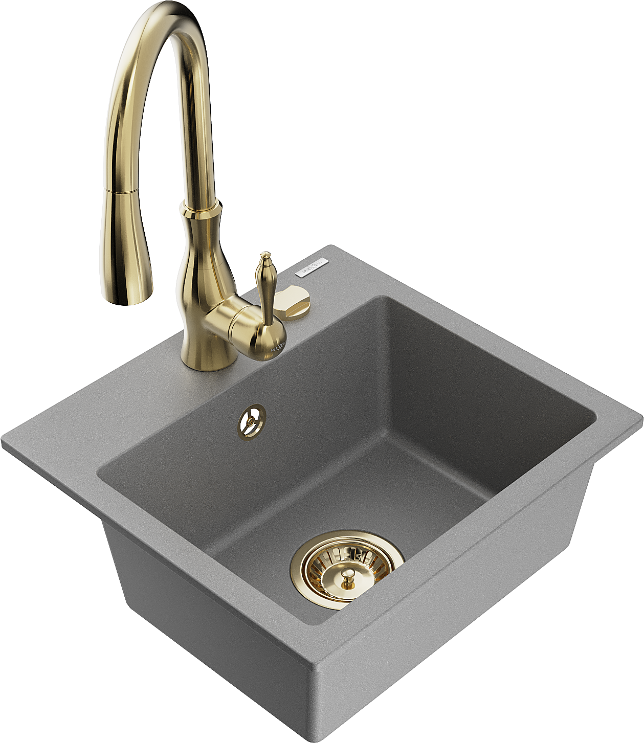 Mexen Milo évier en granit 1 bac avec robinet de cuisine Savita, gris - 6505-71-672601-50