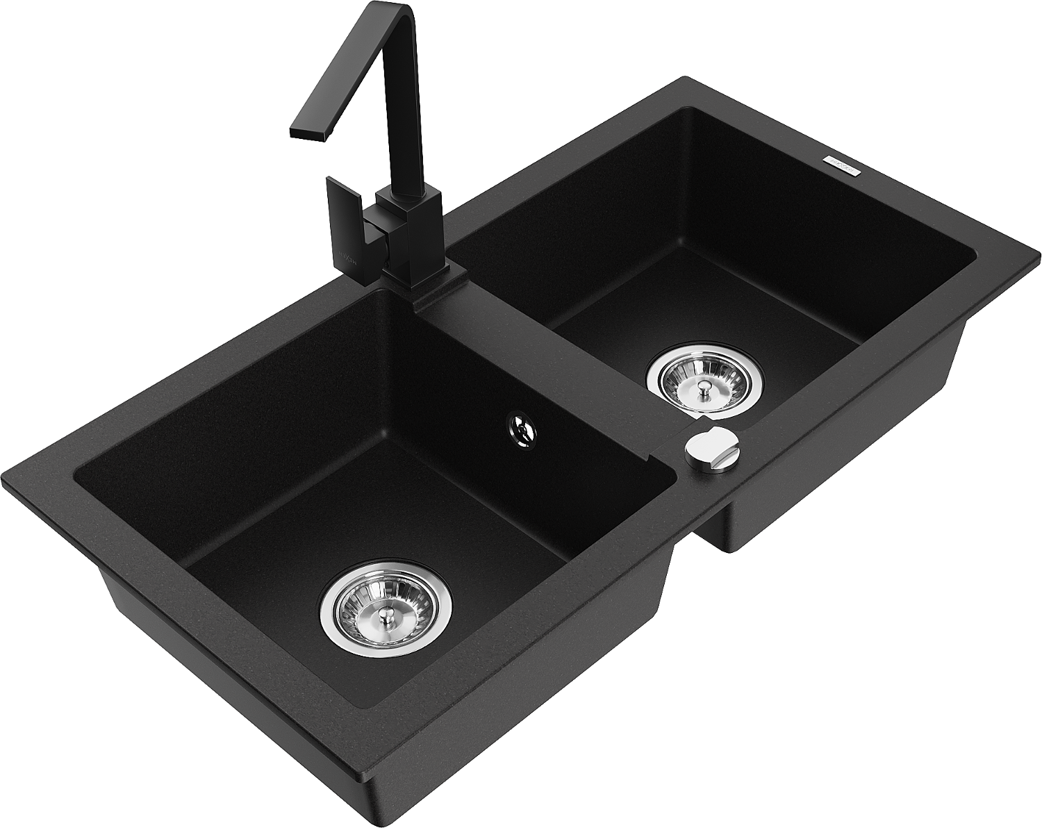 Mexen Mario évier en granit à 2 bacs avec mitigeur de cuisine Rita, noir - 6504-77-670300-70