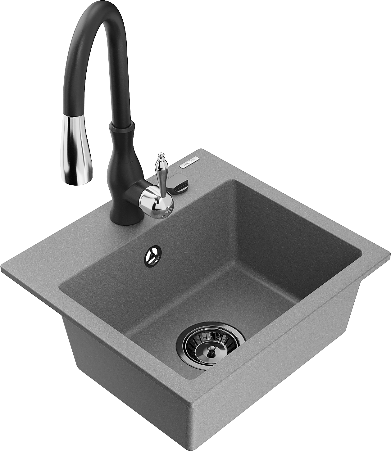 Mexen Milo évier en granit 1 cuve avec robinet de cuisine Savita, gris - 6505-71-672601-70-B