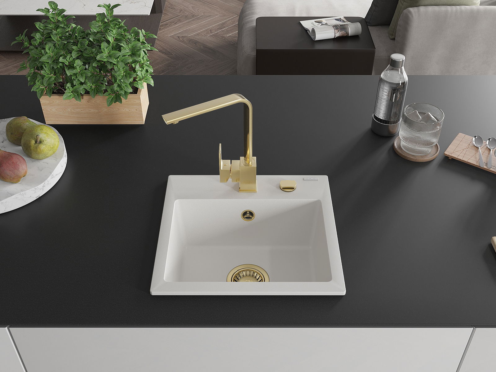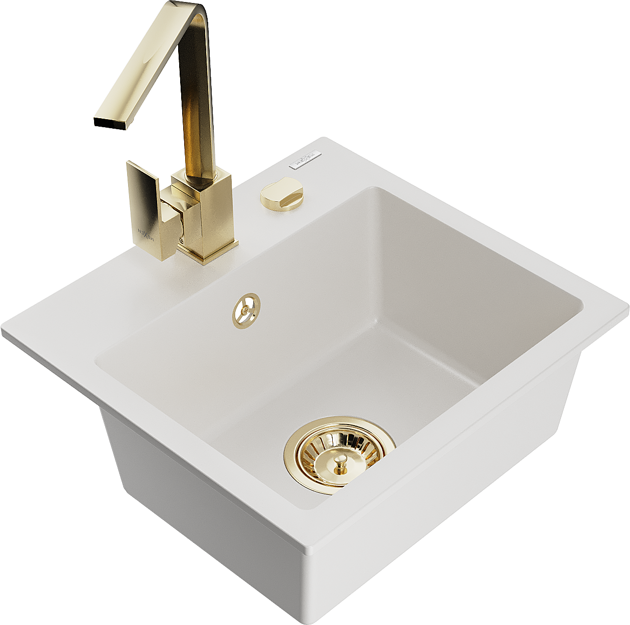 Mexen Milo évier de cuisine en granit 1 bac avec robinet de cuisine Rita, blanc - 6505-20-670300-50