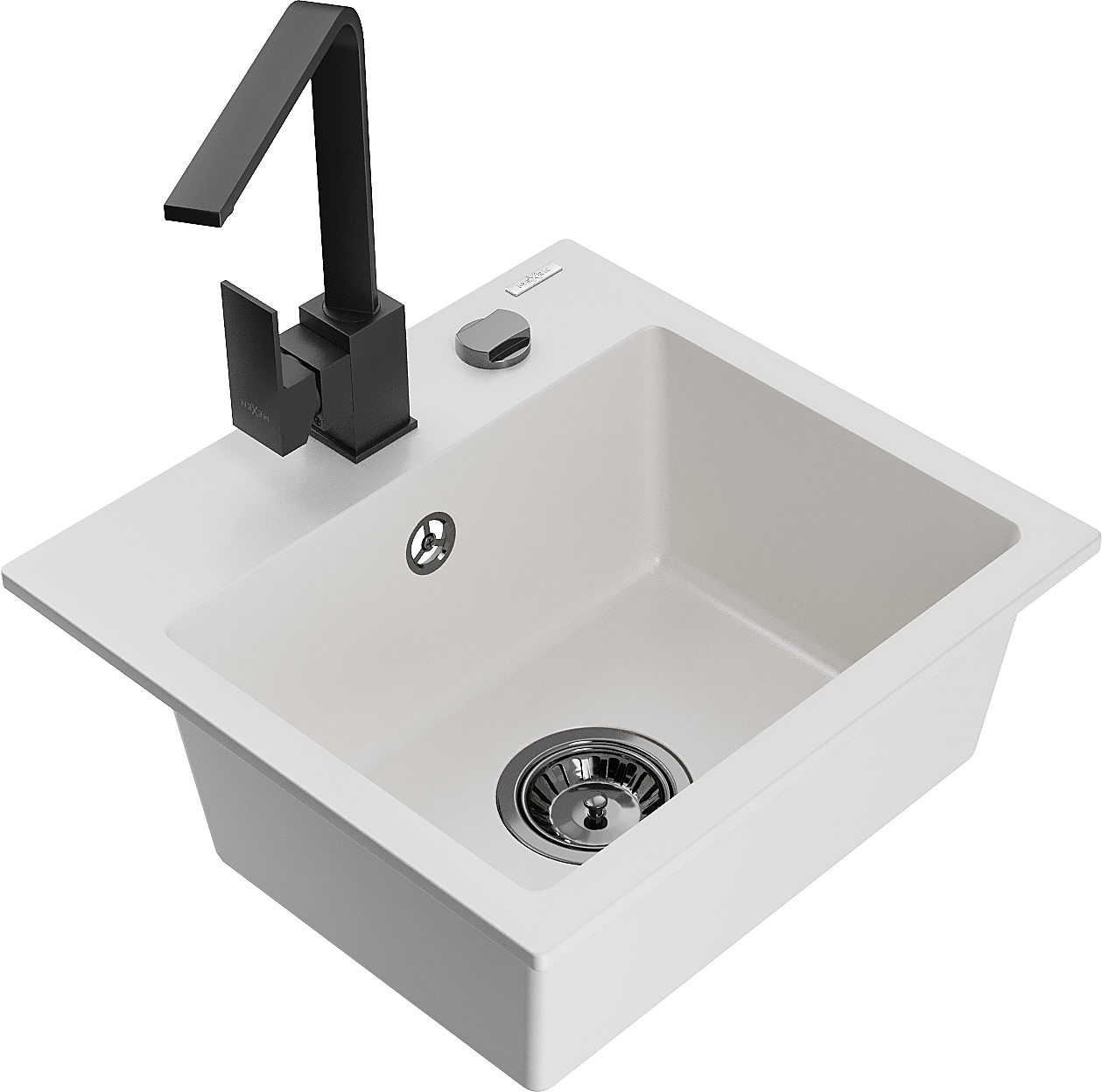 Mexen Milo évier en granit 1 bac avec robinet de cuisine Rita, blanc - 6505-20-670300-70
