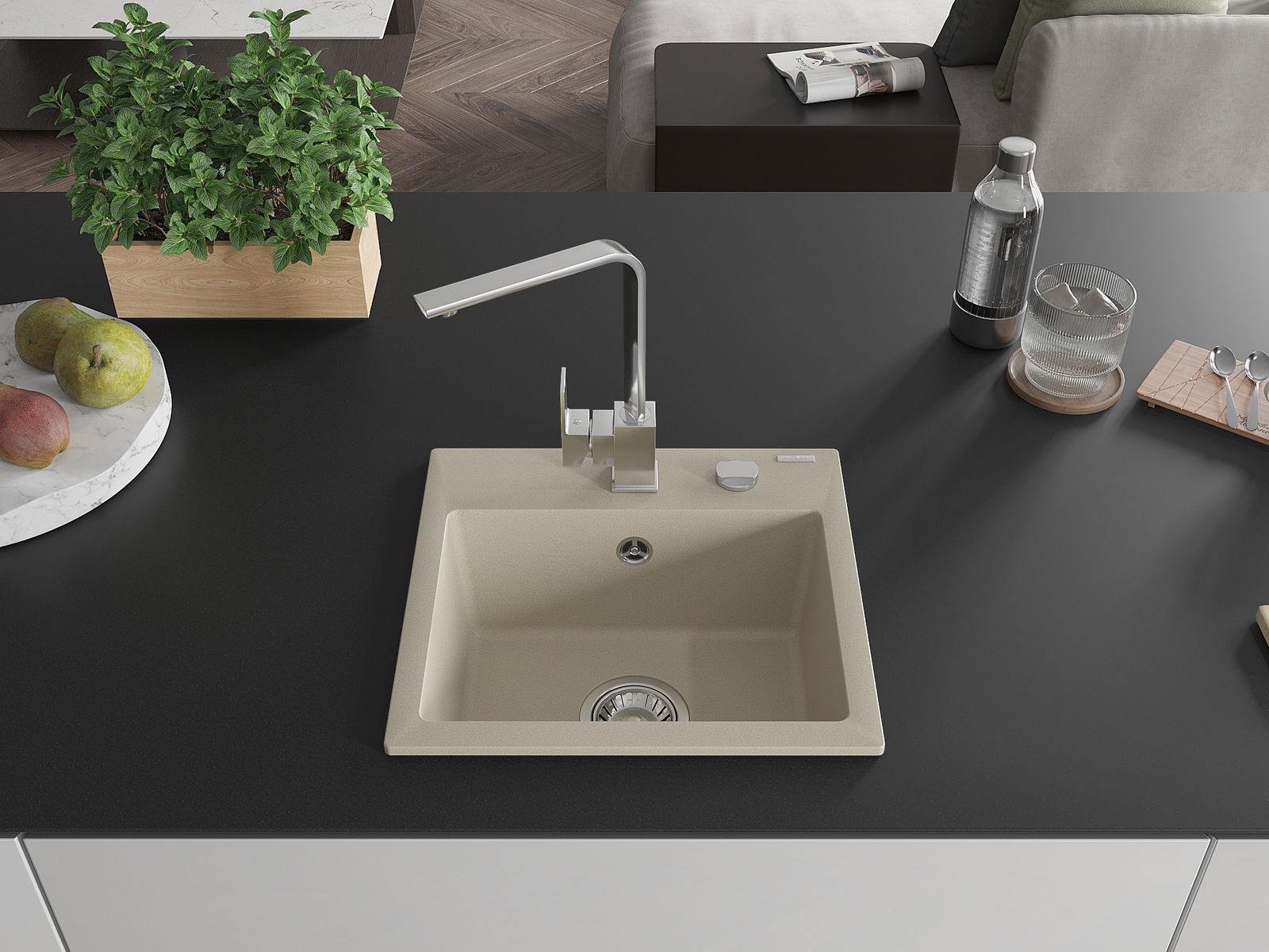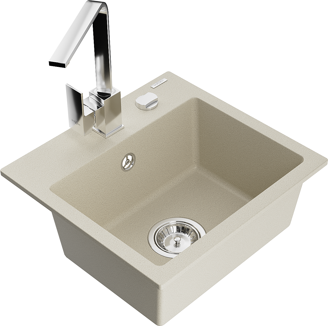 Mexen Milo évier en granit 1-bac avec robinet de cuisine Rita, beige - 6505-69-670300-00