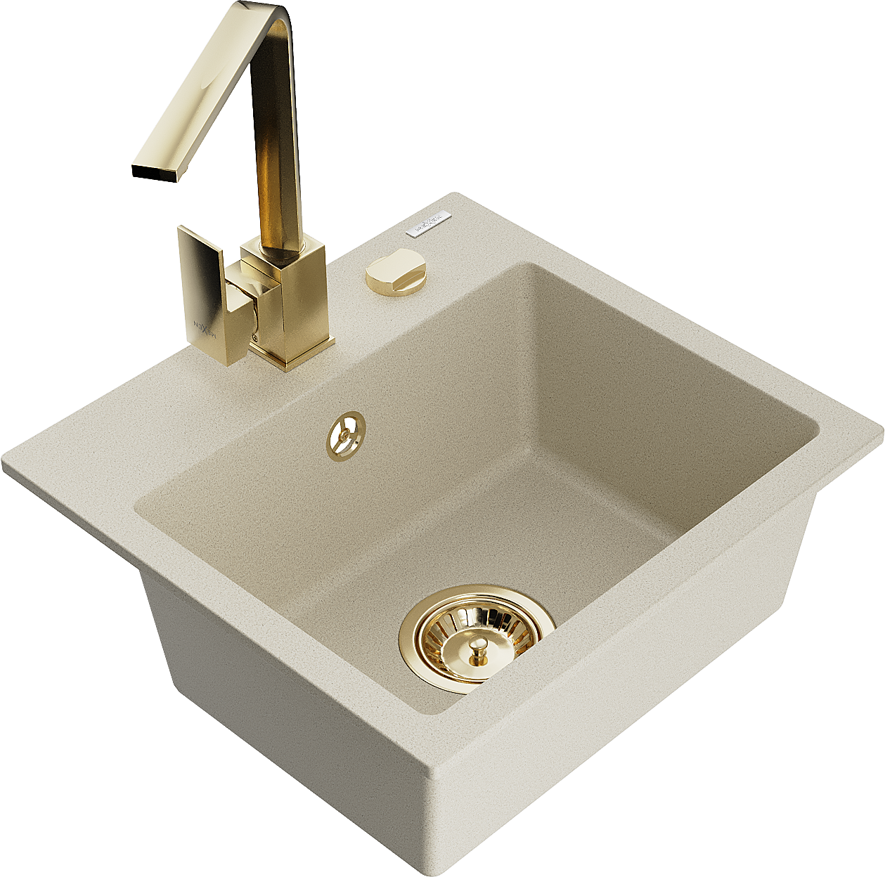 Mexen Milo évier en granit 1 bac avec robinet de cuisine Rita, beige - 6505-69-670300-50