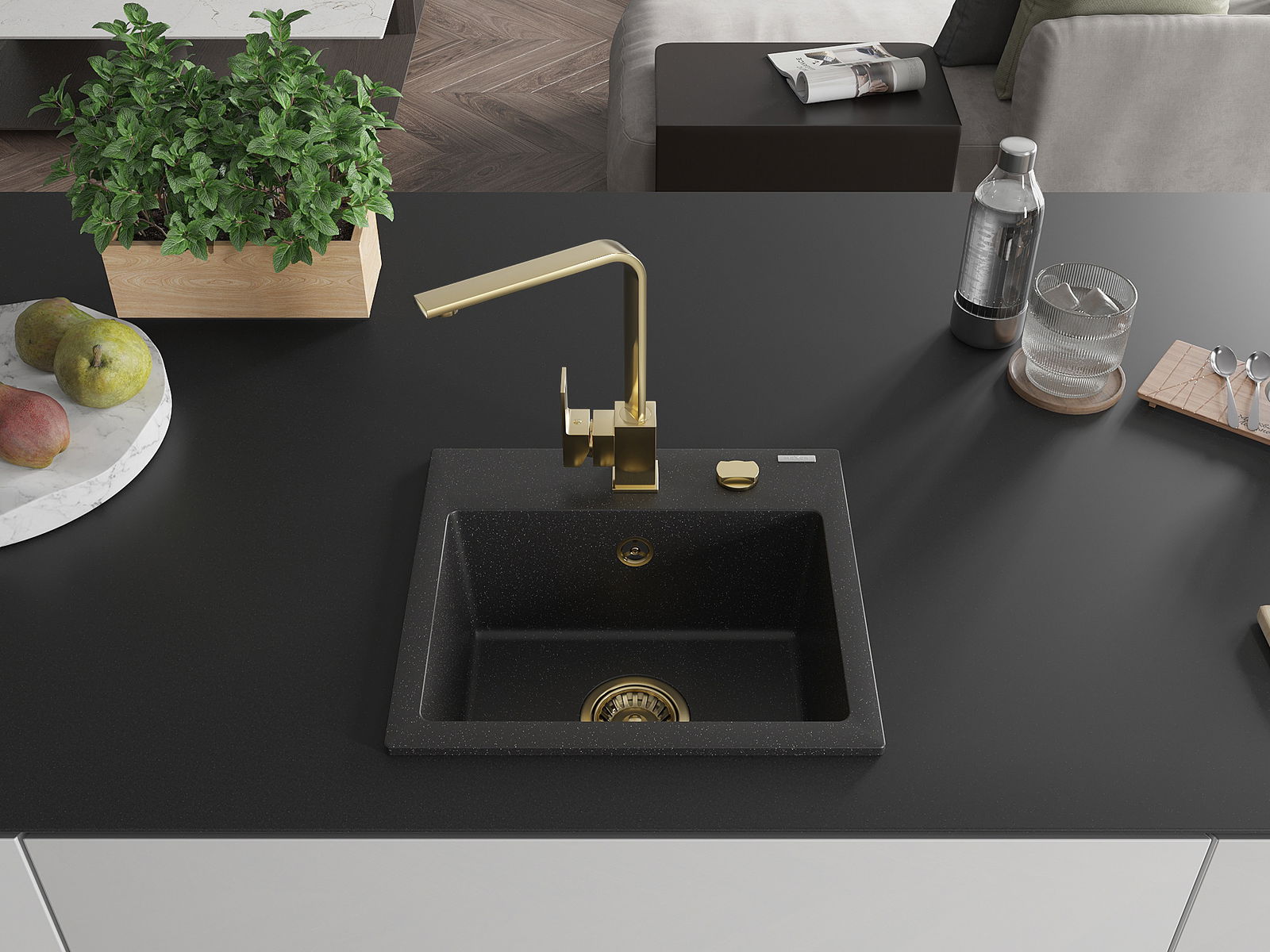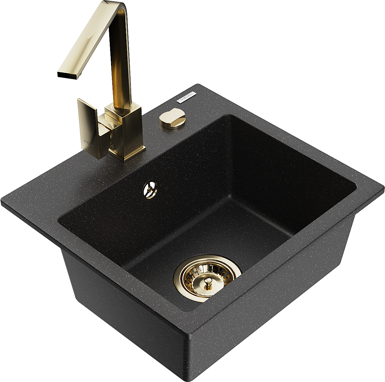 Mexen Milo évier de cuisine en granit à 1 bac avec mitigeur Rita, noir/argent métallique - 6505-73-670300-50