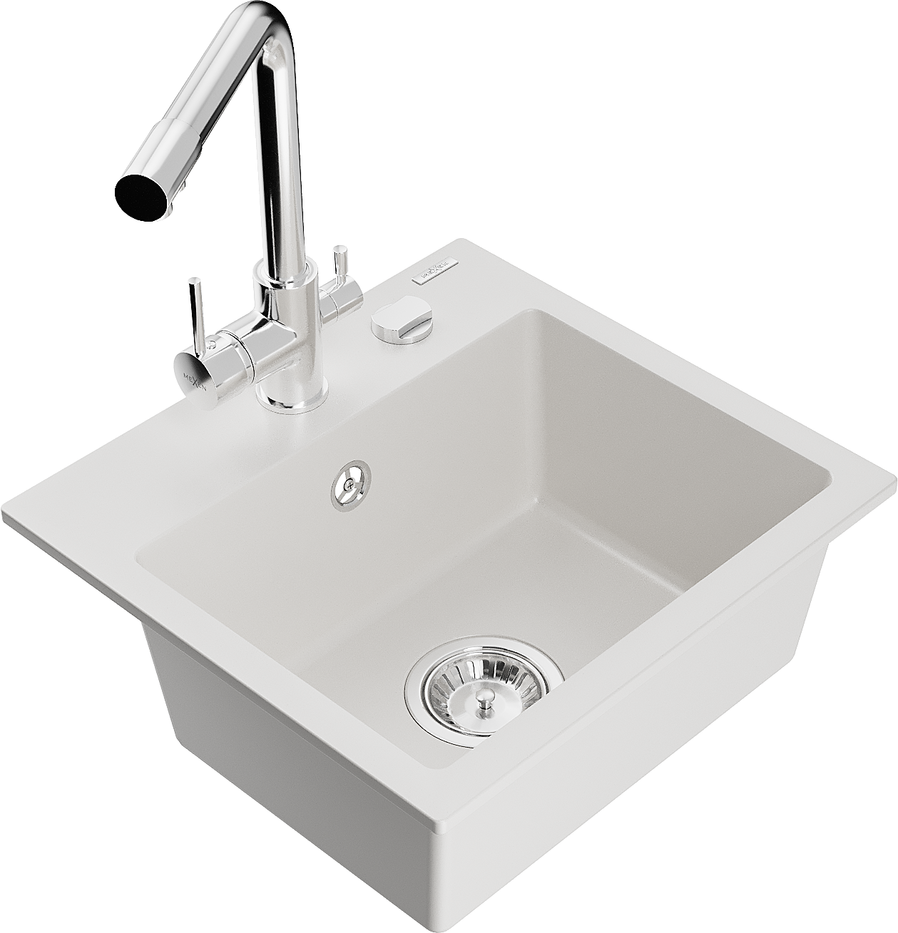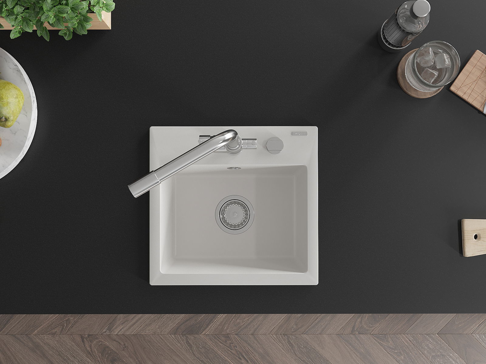 Mexen Milo évier en granit à 1 bac avec mitigeur de cuisine Duero, blanc - 6505-20-671600-00