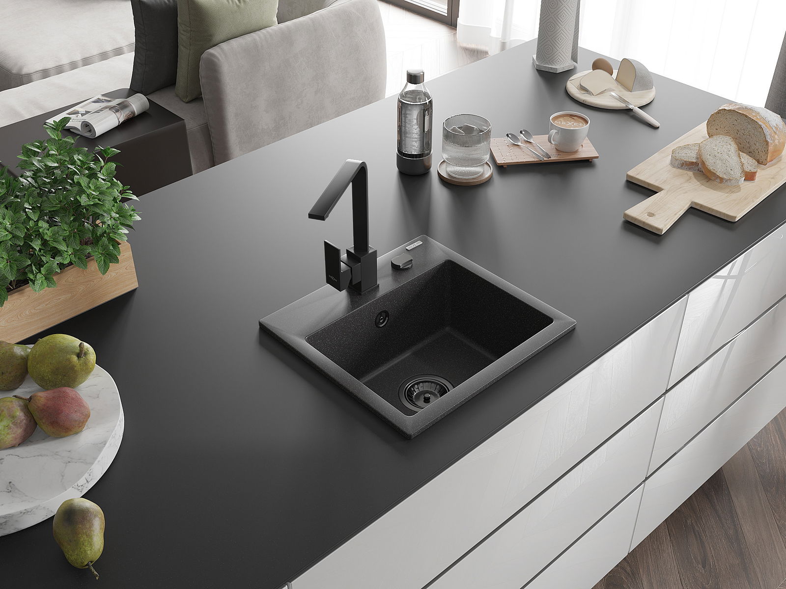 L'évier est fabriqué en granit de haute qualité. Il constitue un complément élégant et surtout pratique pour toute cuisine, quel que soit son style. La qualité et la durabilité du granit garantissent de nombreuses années d'utilisation.
