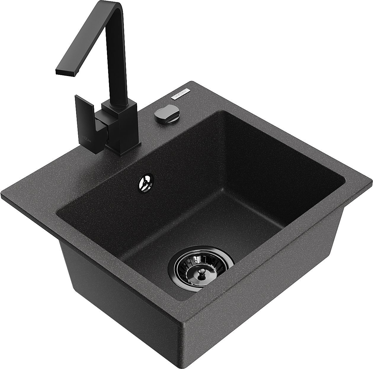 Mexen Milo évier de cuisine en granit 1 bac avec robinet Rita, noir moucheté - 6505-76-670300-70-B