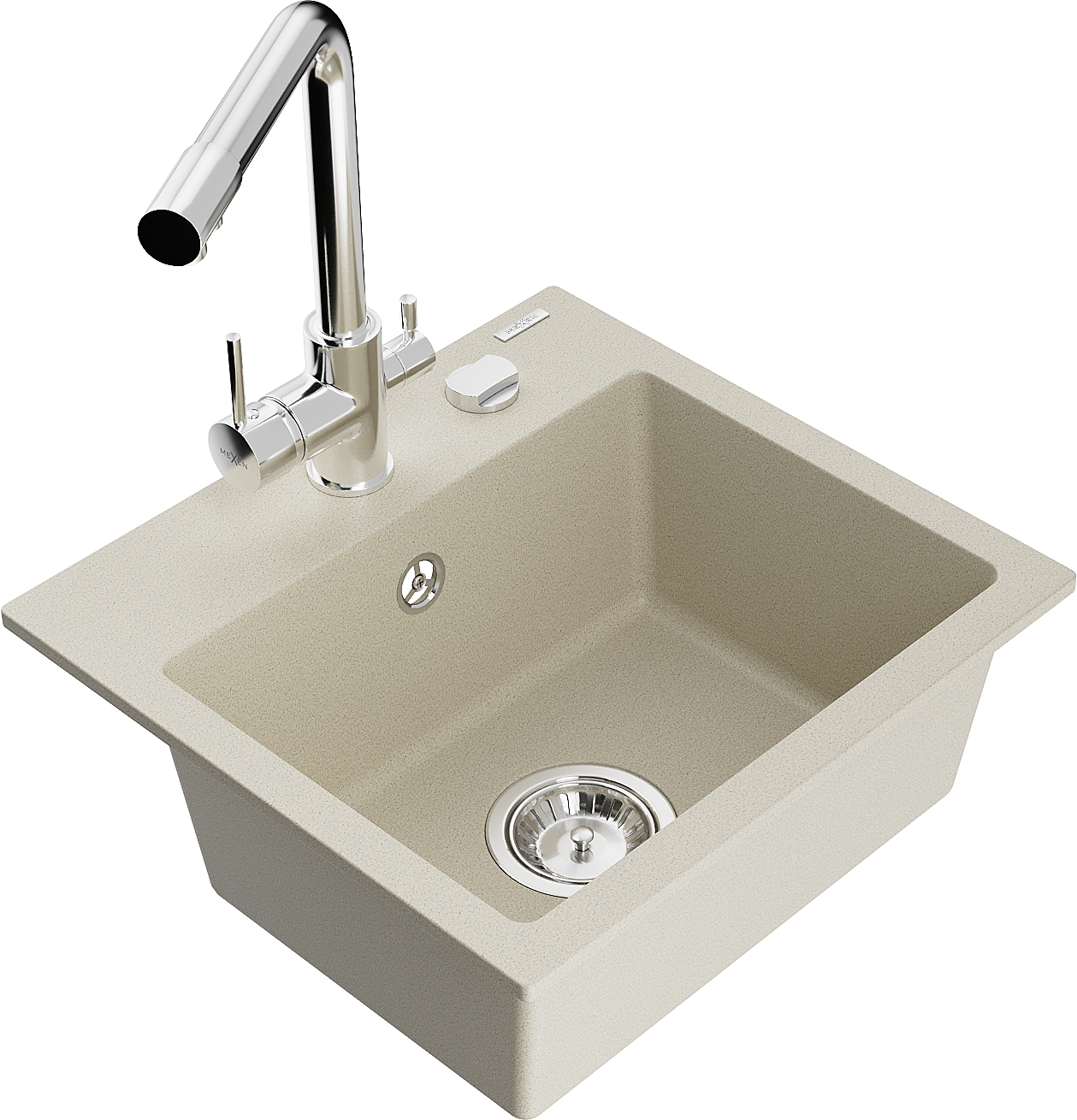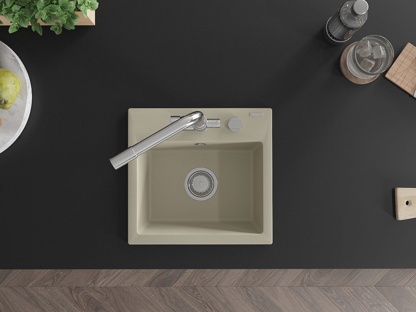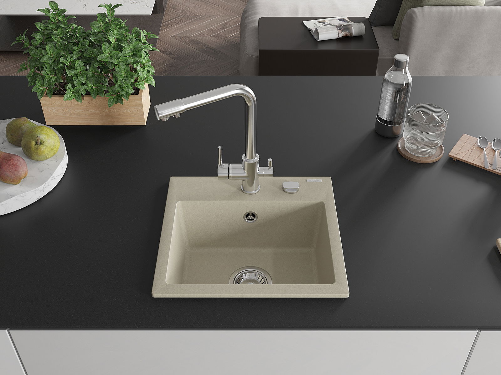 Mexen Milo évier de cuisine en granit 1 bac avec robinet de cuisine Duero, beige - 6505-69-671600-00