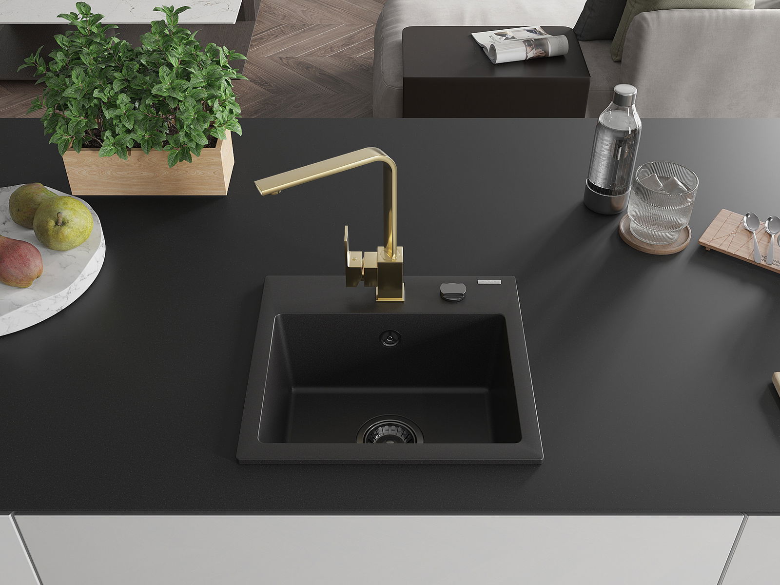 Mexen Milo évier en granit 1-bac avec robinet de cuisine Rita, noir - 6505-77-670300-50-B
